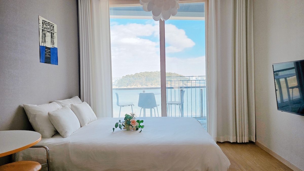오션뷰의 깔끔하고 고급스러운 인테리어의 객실