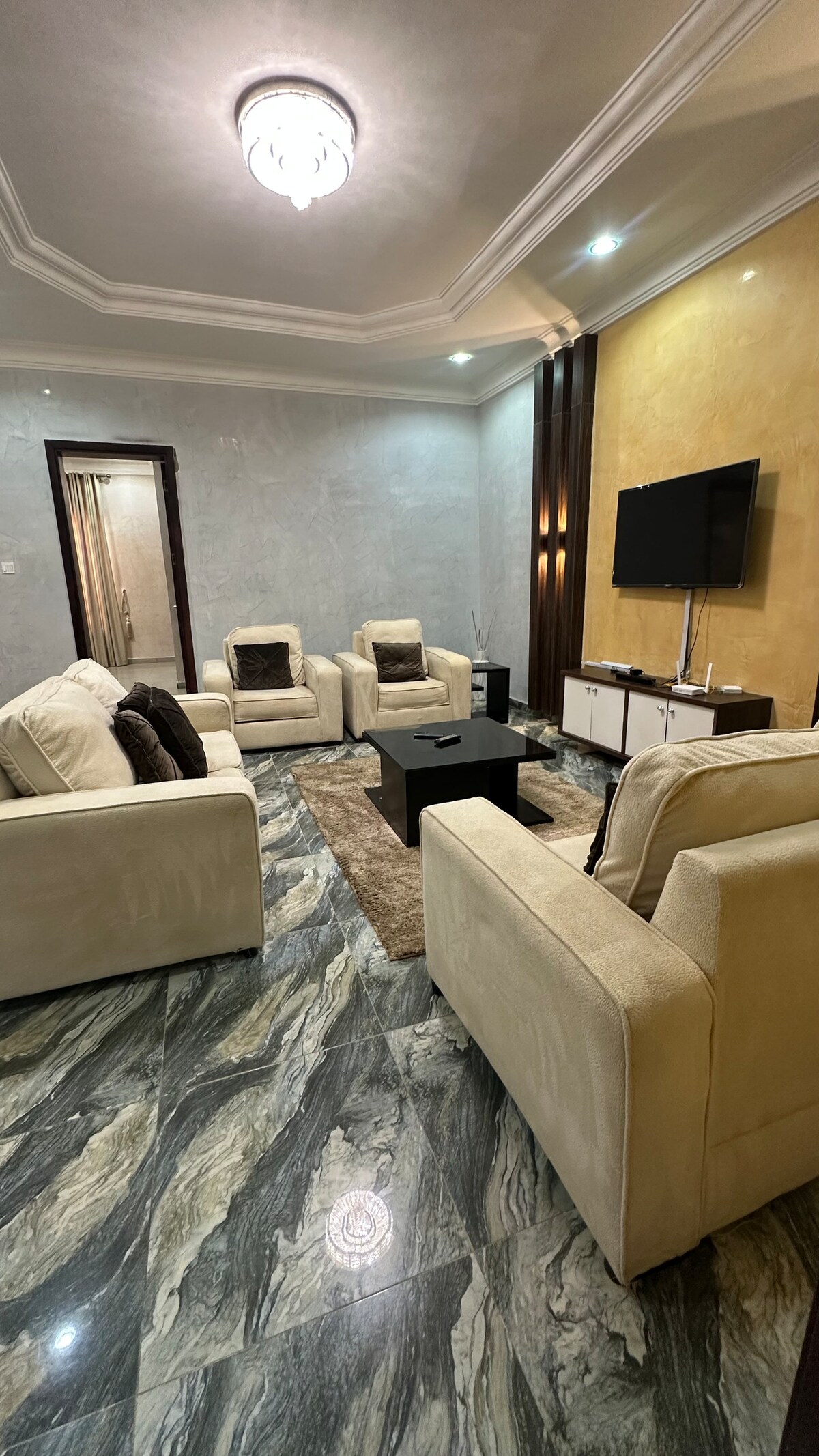 Կահավորված 3 ննջասենյակով բնակարան ՝ բոլոր առանձին սենյակներով և հյուրերի համար հասանելի խոհանոցով ։ Բնակարանը գտնվում է Աբուջայի կենտրոնում ՝ բանկերին, առևտրի կենտրոններին, առևտրի համալիրին մոտ: Այն գտնվում է մեգապոլիսի բոլոր հիմնական տարածքներից ոչ հեռու ՝ հիանալի նախագծված զբոսանքներով շրջակա միջավայրով, մարզասրահից, մանկական խաղահրապարակից, ֆուտբոլի խաղադաշտից, անվճար կայանատեղիից օգտվելու հնարավորությամբ ։