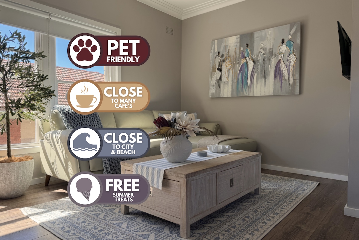 Հանգստացեք ծառերով ծածկված Մանգերտոն Հիլլում գտնվող խաղաղ, լուսավոր բնակարանում, որը գտնվում է երկաթուղային կայարանից ընդամենը 500 մետր հեռավորության վրա, և հեշտությամբ կարող եք ոտքով գնալ Վոլոնգոնգի հիվանդանոց և կենտրոնական գործարար թաղամաս։ Վայելեք առանձնություն և հանգիստ՝ մնալով ամեն ինչի մոտ, անկախ այն բանից՝ այցելում եք ընտանիքին, աշխատում եք տեղում, թե ուսումնասիրում եք տարածաշրջանի հիասքանչ աշնանային ծովափնյա զբոսանքները և հեծանվային արահետները։ Լիովին ինքնավար, մտածվածորեն կահավորված և իդեալական է ինչպես կարճ, այնպես էլ երկար այցերի համար։
