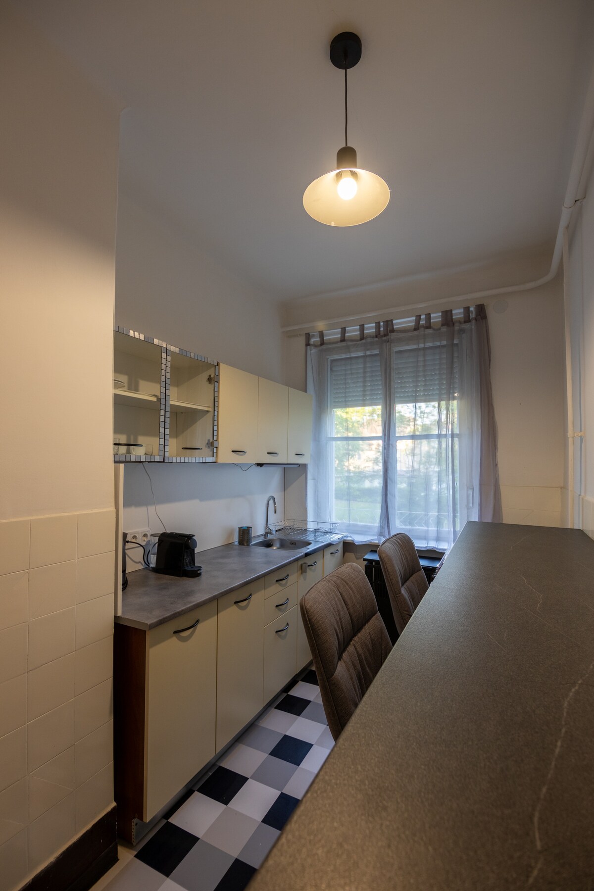 Ժամանակակից, հանգիստ բնակարան Գյոր քաղաքի կենտրոնի մոտ, անմիջապես համալսարանի հարևանությամբ, փակ կայանատեղիով ։ Բարի գալուստ մեր ժամանակակից առաջին հարկի բնակարան, որը կառուցվել է 2022 թվականին, որը գտնվում է Գյորի սրտից և համալսարանից ոտքով հեռավորության վրա, բայց հանգիստ, խաղաղ փողոցում ։ Բնակարանն անհատապես նախագծված է ՝ հաշվի առնելով հարմարավետությունը ։ Բացահայտեք Գյորի պատմական կենտրոնը, նրա ռեստորանները, սրճարանները կամ 5 րոպեում քայլեք դեպի համալսարան ՝ ամեն ինչ նորաոճ, հարմարավետ միջավայրից: