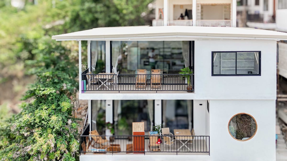 Kick back and relax in this calm, stylish space. Located steps from the beautiful shores of Chaloklum Bay, Koh Phangan, an area known for its rich local culture, fresh-off-the-boat seafood, crystal clear seawater and white sandy beach. This 1 bedroom top floor apartment comes with a private deck overlooking the blue seascape, a fully equipped kitchen, king bed, cozy living room, outdoor shower, indoor/outdoor dining and high-speed wifi. This newly renovated gem is what you've been looking for.