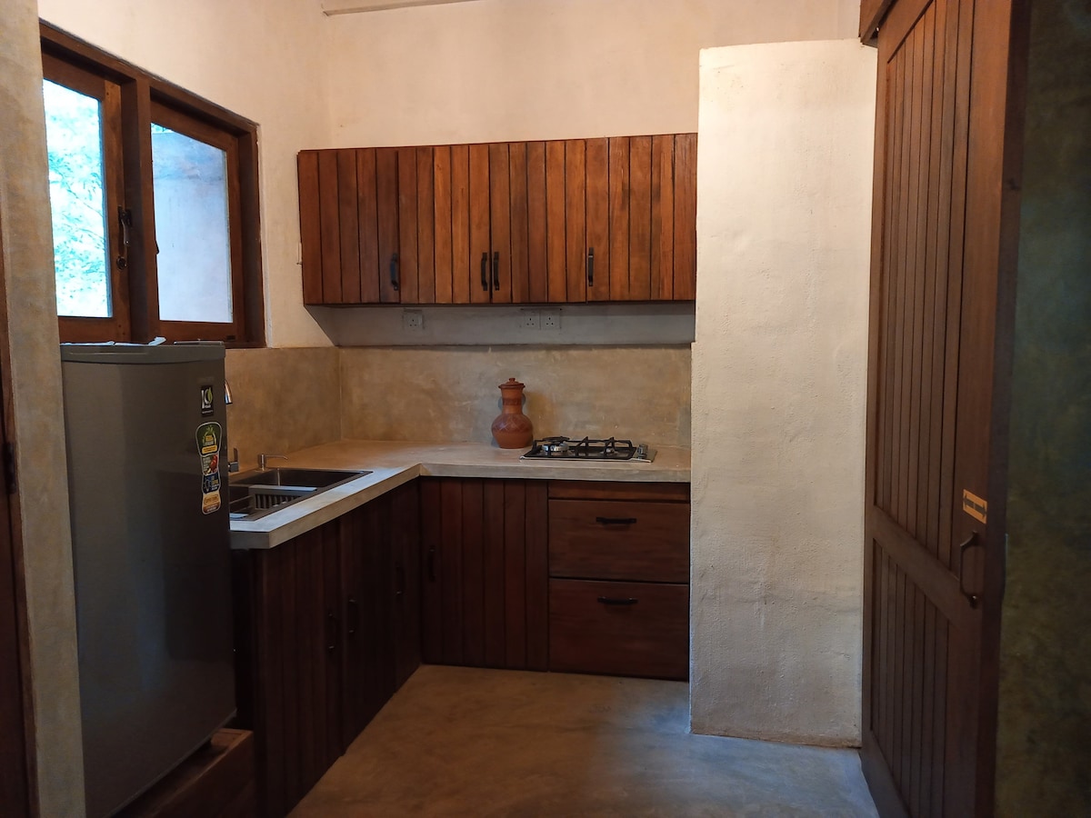 Սիգիրիյա Վուդլենդի կաբանան նորակառույց է (2025 թվական), ունի մեկ ննջասենյակ՝ կից բացօթյա լոգասենյակով, որն ունի լոգարան։ Այս մեկ սենյականոց բաց հյուղակը ունի ձեզ անհրաժեշտ ամեն ինչ։ Գեղեցիկ տուն, որը ստեղծվել է բնական միջավայրի հետ ներդաշնակության մեջ՝ հիմնականում փայտ և կավ օգտագործելով