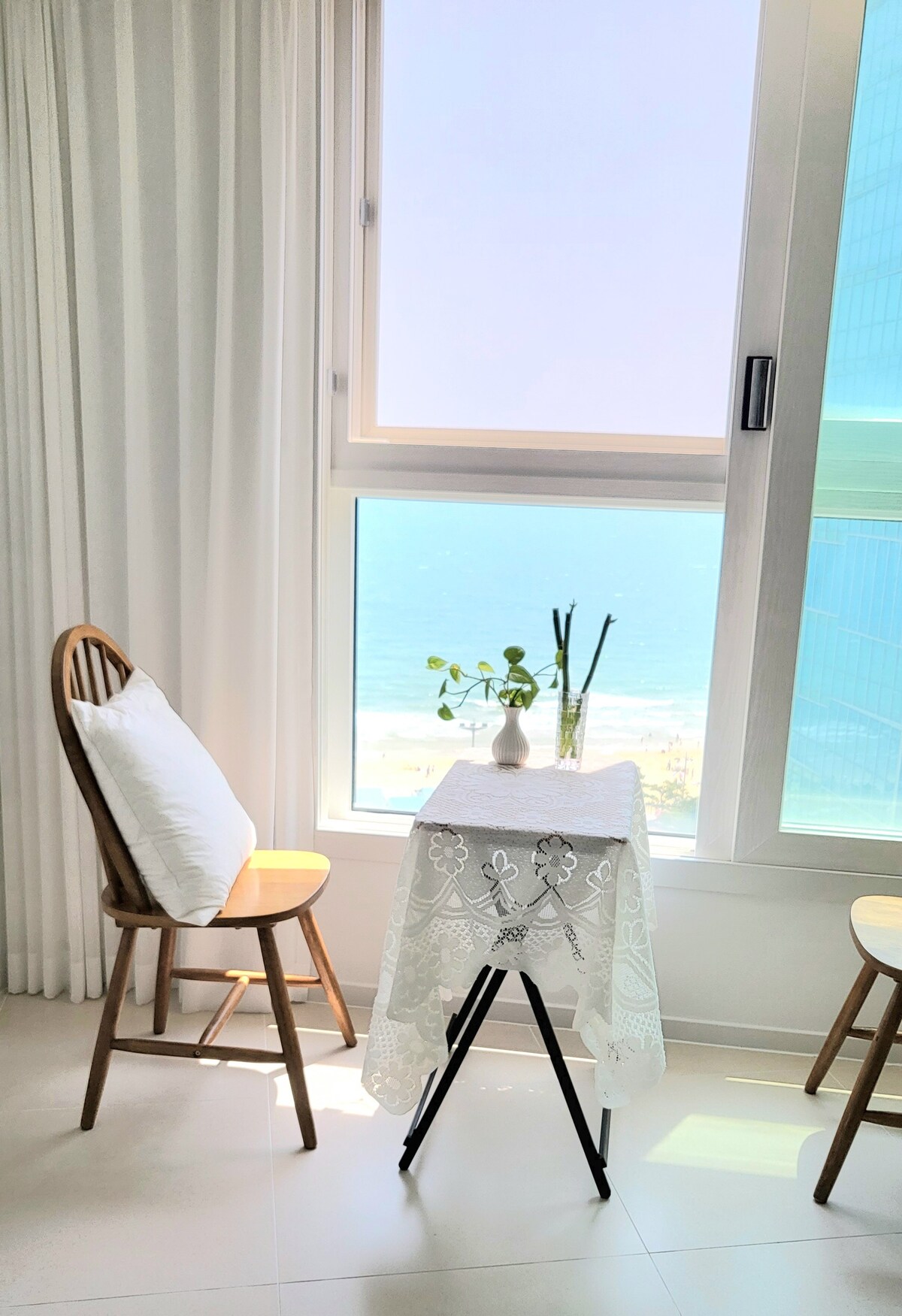 부산#해운대#도보1분#오션뷰#캡슐열차 #블루라인파크#무료주차#청사포#호텔베딩#취사#3bed