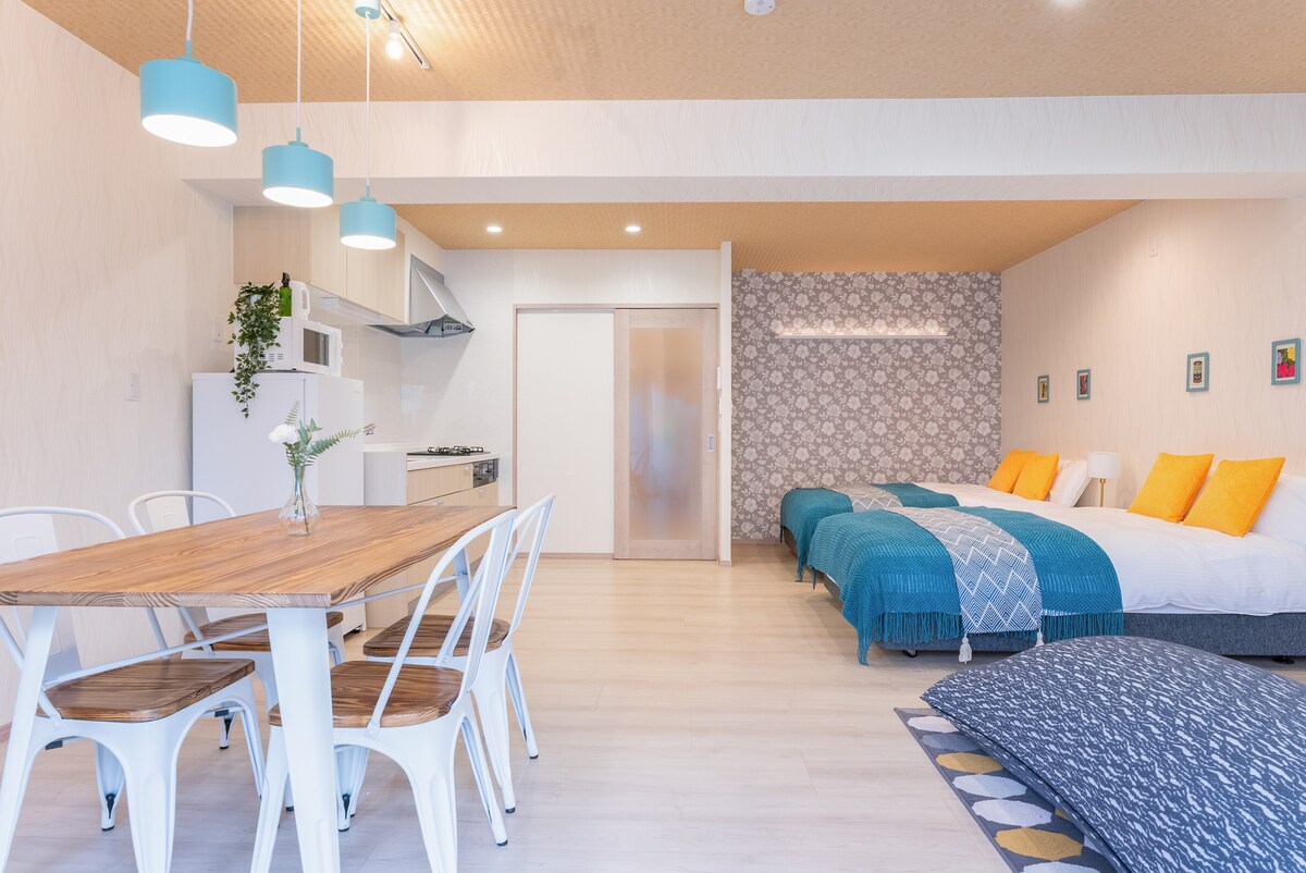 【JR博多駅より徒歩6分】60.0㎡/博多エリア/ダブルベッド3台/最大4名宿泊可