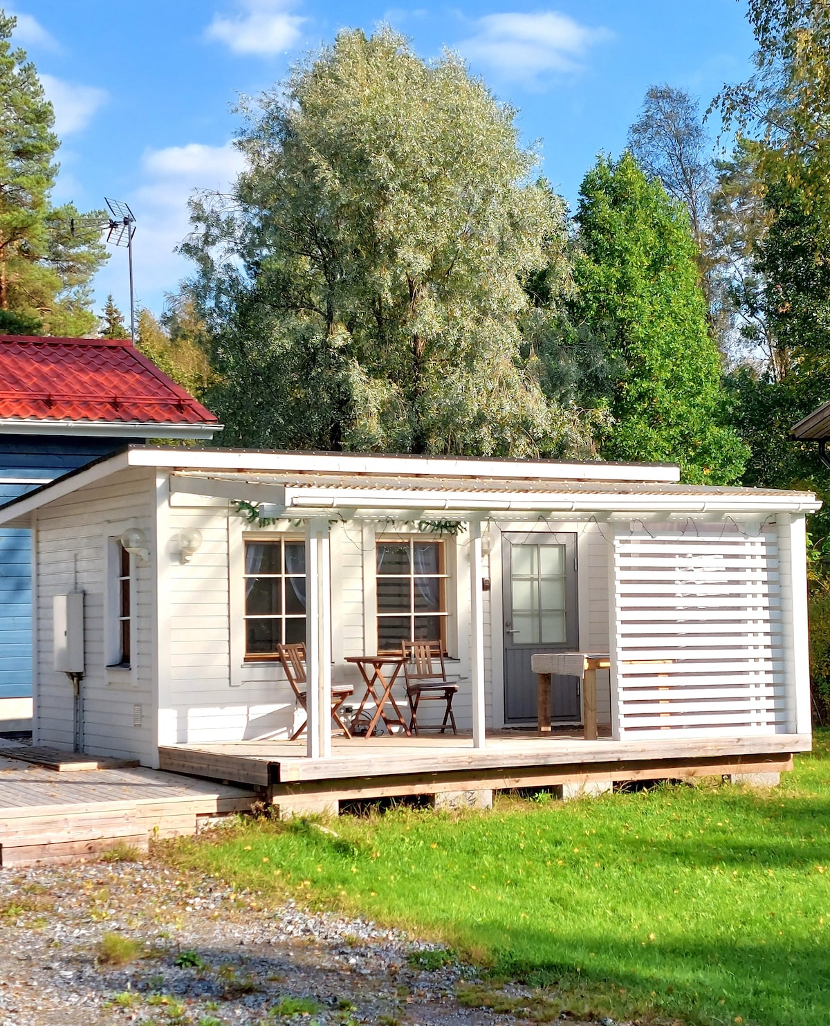 Պայծառ քոթեջ հանգիստ տարածքում ՝ հիանալի փոխադրամիջոցով ։ Տամպերե քաղաքի կենտրոնը գտնվում է 9 կմ հեռավորության վրա ։ Կառուցվել է 2012 թվականին, հյուրերի համար նախատեսված քոթեջը հարմար է մեկ կամ երկու անձի համար ։ Ձեզ հասանելի կլինի մի ամբողջ քոթեջ, ծածկված տեռաս, առանձին լողափ ։ Քոթեջն ունի 160x200 սմ մահճակալ, ճաշասենյակ/աշխատանքային տարածք և զուգարան ։ Խոհանոցիկում կա սառնարան, սրճեփ, թեյնիկ, սպասք և միկրոալիքային վառարան ։ Դուք կկարողանաք օգտվել բակում անվճար կայանատեղիից ։ Քոթեջն օգտագործվում է ամբողջ տարվա ընթացքում ։