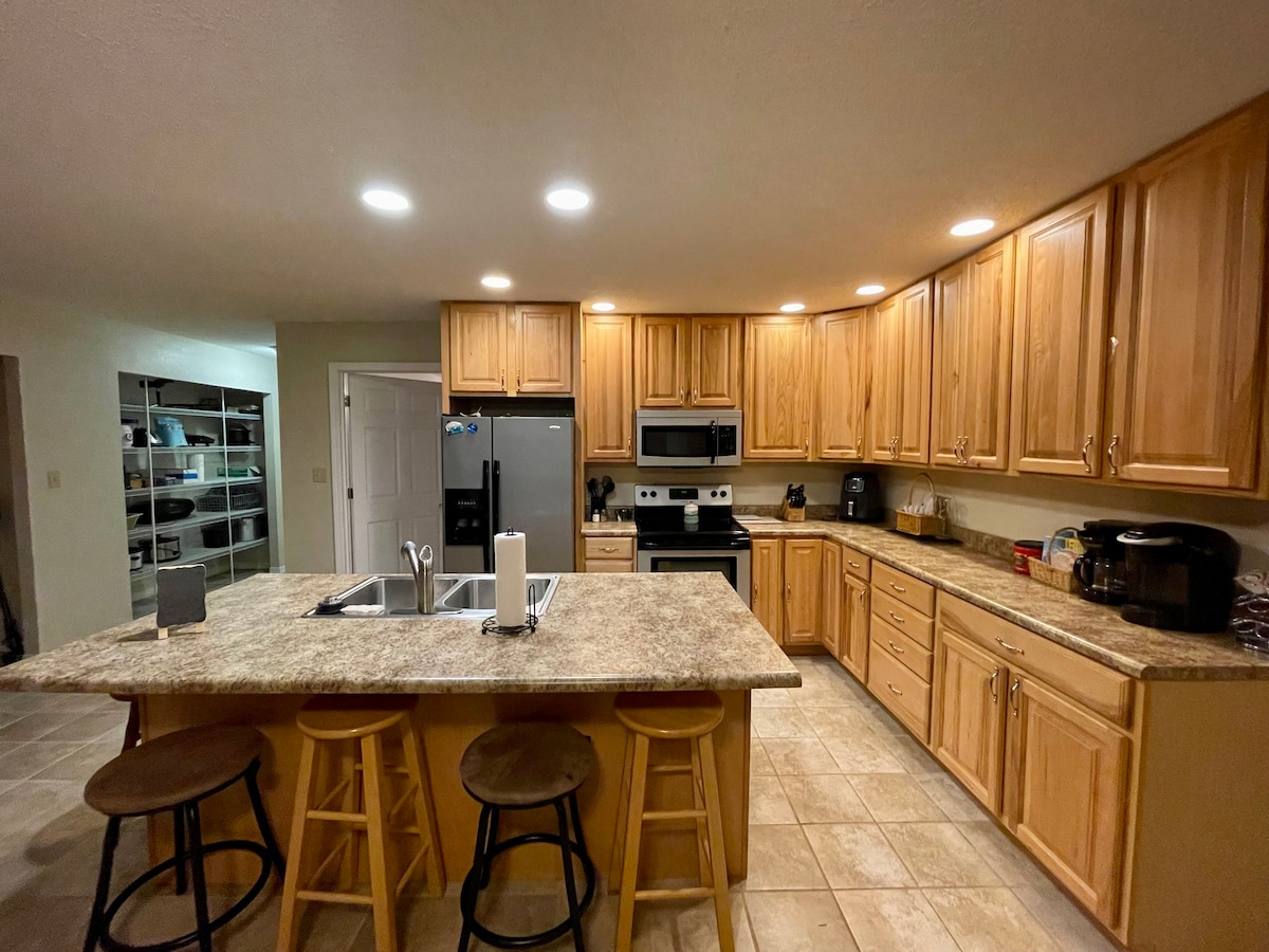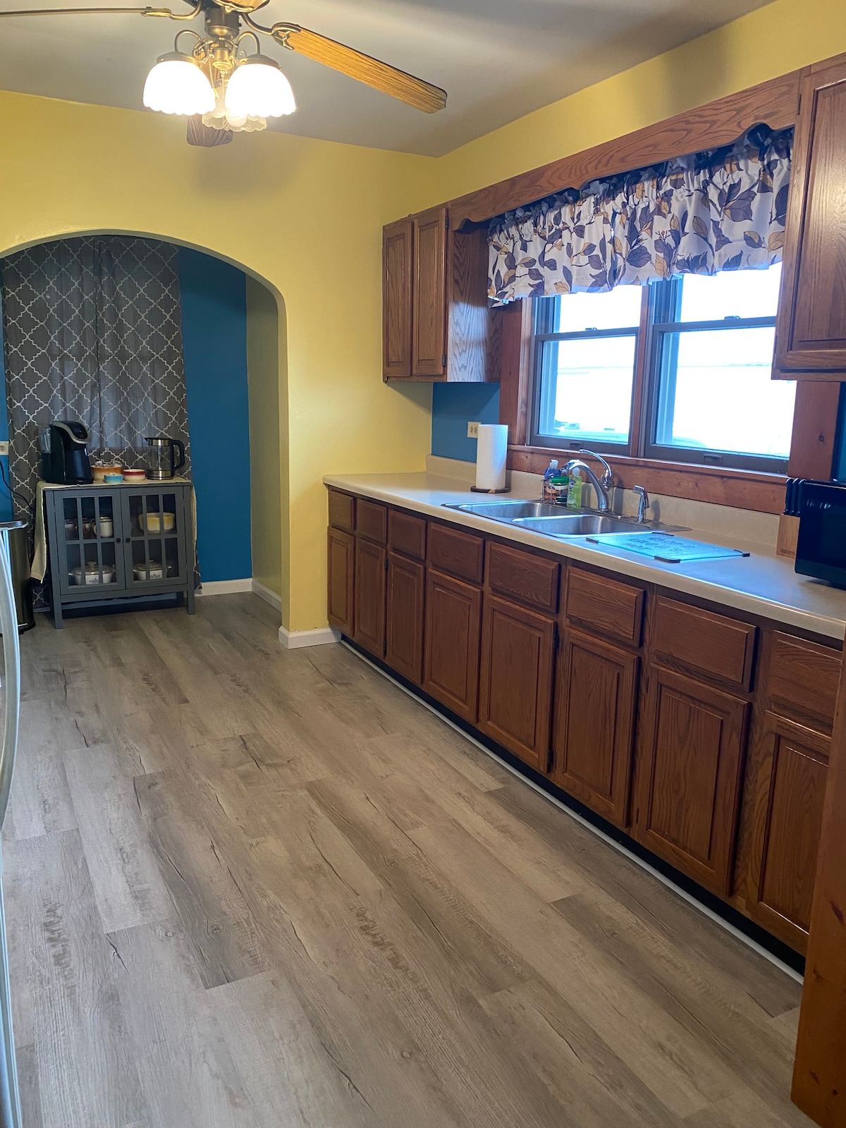 The Lodge is perfect, small town location for any large family or group. Spacious open concept living space with Smart TV and wifi. Fully stocked kitchen with dining table for 8 and bar height seating for 10. 5 bedroom, 3 bathroom, sleeps up to 18. 1 bedroom is a suite, queen bed and bath attached. 4 bedrooms have 2 full beds in each. Bar and Pool Table. Outdoor seating with fire pit. Plenty of room for the whole family!