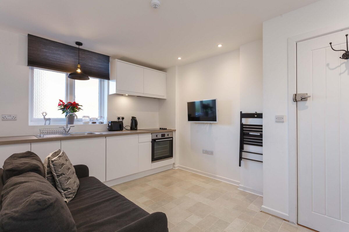The lodge Is situated within the grounds of our home, and is completely self contained, with a full kitchen, separate bedroom, en suite shower and living area. The living area comfortably seats 4 and one of the sofas can be made into a small double bed if required. There is a fully functioning log burner and a large OLED TV with Dolby Atmos. The bedroom offers a superking sized bed, dressing table, and wardrobes. There is an en-suite shower room, with a luxury shower and heated mirror.