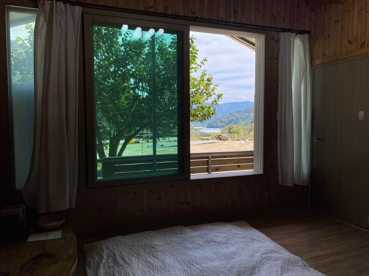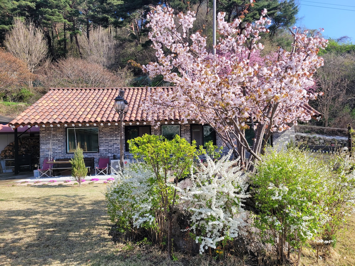 🎁Կերոսինային սալօջախի սպասարկման բաց արարողություն🎁 Սա հիանալի կացարան է գյուղական փոքրիկ գյուղում՝ գիշերային ծառերով անտառի և լեռան տեսարանով։ Գիշերային անտառի կողքին կա փոքրիկ տուն, որտեղ կարող եք հանգստանալ ու լիցքաթափվել, և վրան, որտեղ կարող եք զգալ արշավի մթնոլորտը։ Այս տարածքը նախատեսված է միայն մեկ թիմի համար։ Դա հանգստի տարածք է, որտեղ կարող եք թեյ խմել, երաժշտություն լսել, գրքեր կարդալ և ֆիլմեր դիտել։ Սա փայտաշեն նոր տուն է, որը կառուցվել է 2025 թվականի նոյեմբերին։ Դա փոքրիկ ստուդիայի տեսակի լոֆթ է Բակում կա խորոված պատրաստելու հարմարություն և վրան, որտեղ կարող եք ուտել և հանգստանալ։ Մենք ձեզ կբերենք պարզ նախաճաշ ժամը 8-ին։ Մեքենայով 10 րոպե հեռավորության վրա է Սանգիմի անտառը, որը ստեղծվել է Սիլլայի ժամանակաշրջանում։ Այն լավ զբոսայգի է՝ զբոսնելու և «Հազարամյակի անտառում» հանգստանալու համար։ Սկայլենդը մեքենայով 15 րոպե հեռավորության վրա է։ Վայելեք մոնորելսը Եթե բարձրանաք Տեբոնսանի գագաթը, տեսարանը շատ լավ կլինի։ Զիփլայնը երկրի ամենաերկարն է Դա ոգևորիչ է ։ Ջիրիսանը մոտակայքում է, այնպես որ շատ բան կա տեսնելու և վայելելու։