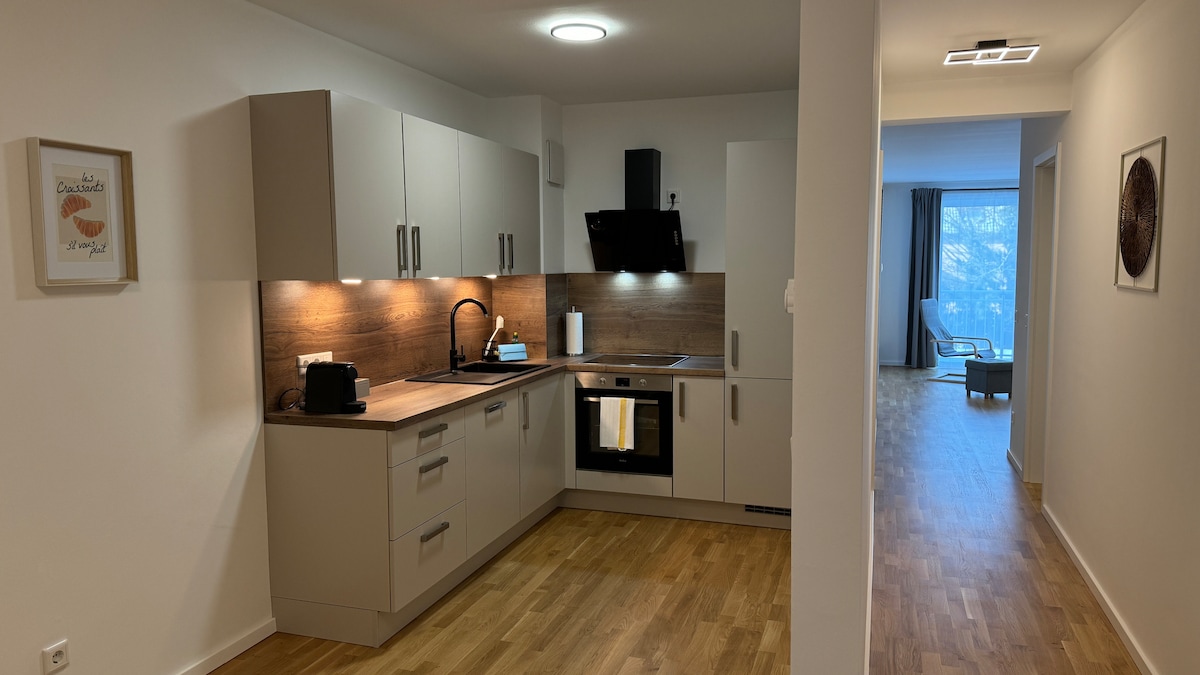 This stylish 2-bedroom apartment is ideal for business travelers and short- or long-term stays, combining comfort, quiet surroundings, and high-quality amenities. - Spacious 2-bedroom apartment in a newly built property - Southwest-facing balcony - Modern, high-quality bathroom - Excellent connection to Frankfurt and the Rhine-Main area - Fully equipped modern kitchen - Nespresso coffee machine - Smart TV, streaming services & high-speed Wi-Fi - Underground parking included - 24/7 self check-in