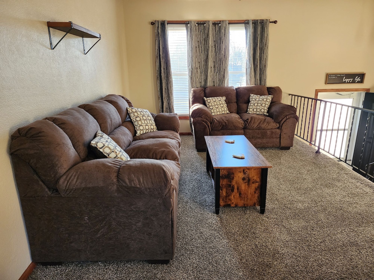 Exactly 9.6 miles from Peoria airport and exactly 14.6 miles to the Peoria Civic Center, this apartment is located in a quiet country area. This is an apartment in the Horsemeister stall barn. Private entrance, plenty of parking, This is a working horse farm with 2 stallions, mares and foals. Can sleep 4 adults comfortably but if you have a larger group you are welcome to bring airbeds. This is just 4 miles from the village of Hanna City. There is a sectional couch that can sleep 2 children.