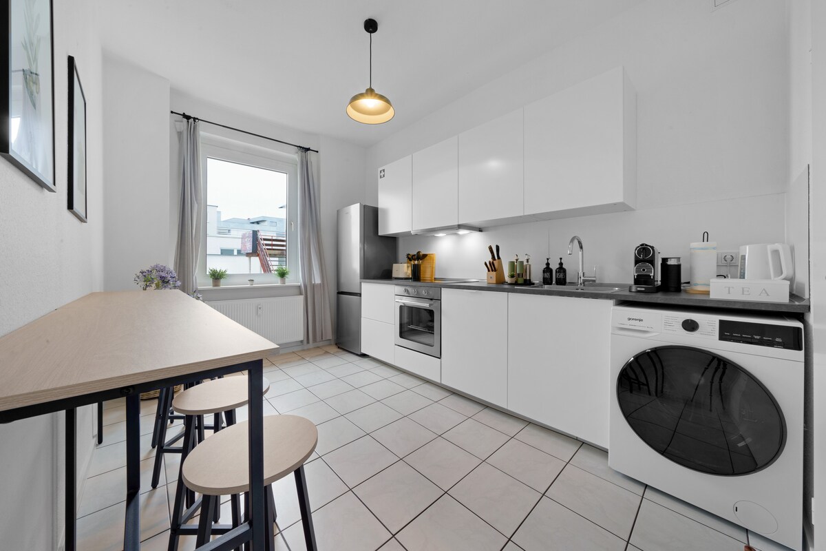 Հանովերում գտնվող բնակարանը ժամանակակից գոհար է, որն ամբողջությամբ վերանորոգված է և հագեցած է բոլորովին նոր կահույքով ։ Նոր խոհանոցում կա սառնարան, սառցարան, ամանալվաց մեքենա և նորաոճ Nespresso սուրճի ապարատ ՝ կատարյալ առավոտյան սուրճի համար ։ Նոր սալիկապատ լոգասենյակը հիանում է արևադարձային անտառների շքեղ ցնցուղով ։ Ամբողջ բնակարանը պահվում է մոխրագույնի լուսավոր և հանգստացնող երանգներով ։ Գտնվելու վայրը և ՛ հանգիստ է, և ՛ հարմար ։