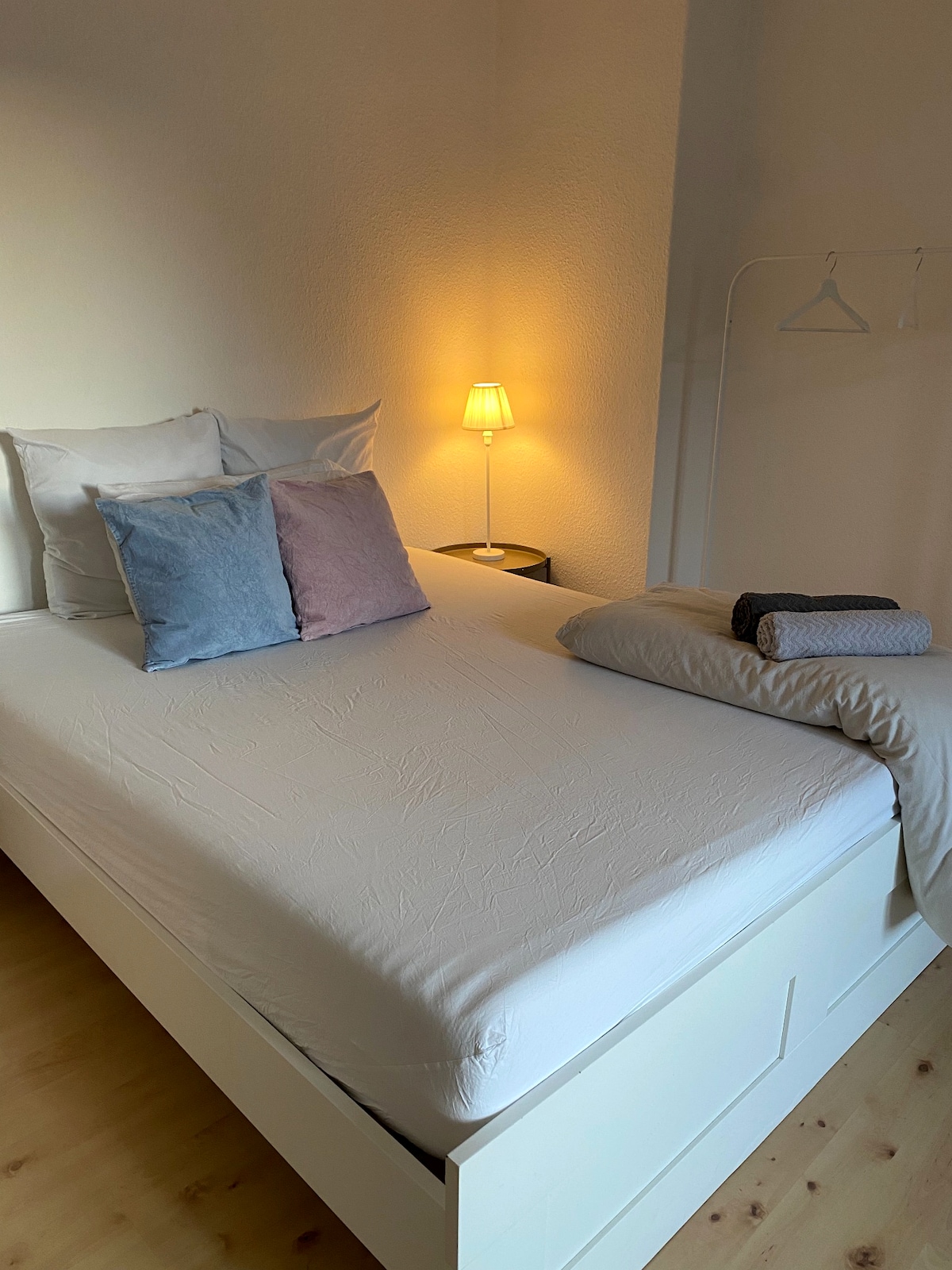 Հարմարավետ սենյակ ՝ երկտեղանի մահճակալով և հեռուստացույցով, ձեզ սպասում է հարևան բնակարանում ։ Առանձին մուտքը ձեզ տանում է դեպի միջանցք ։ Այստեղից հասնում եք լոգասենյակ ՝ լողավազանով և ցնցուղով ։ Առանձին - առանձին ունեք պատուհանով զուգարան ։ Որպեսզի կարողանաք հաճելի նախաճաշել, մենք ձեզ առաջարկում ենք լրացուցիչ սենյակ ՝ բազմոցով, սուրճի սեղանով և անդրավարտիքի կրծքավանդակով, որտեղ կարող եք գտնել Senseo սուրճի ապարատ, միկրոալիքային վառարան, տոստեր, թեյնիկ և սառնարան: Ներառված են Netflix - ը և Wi - Fi - ը