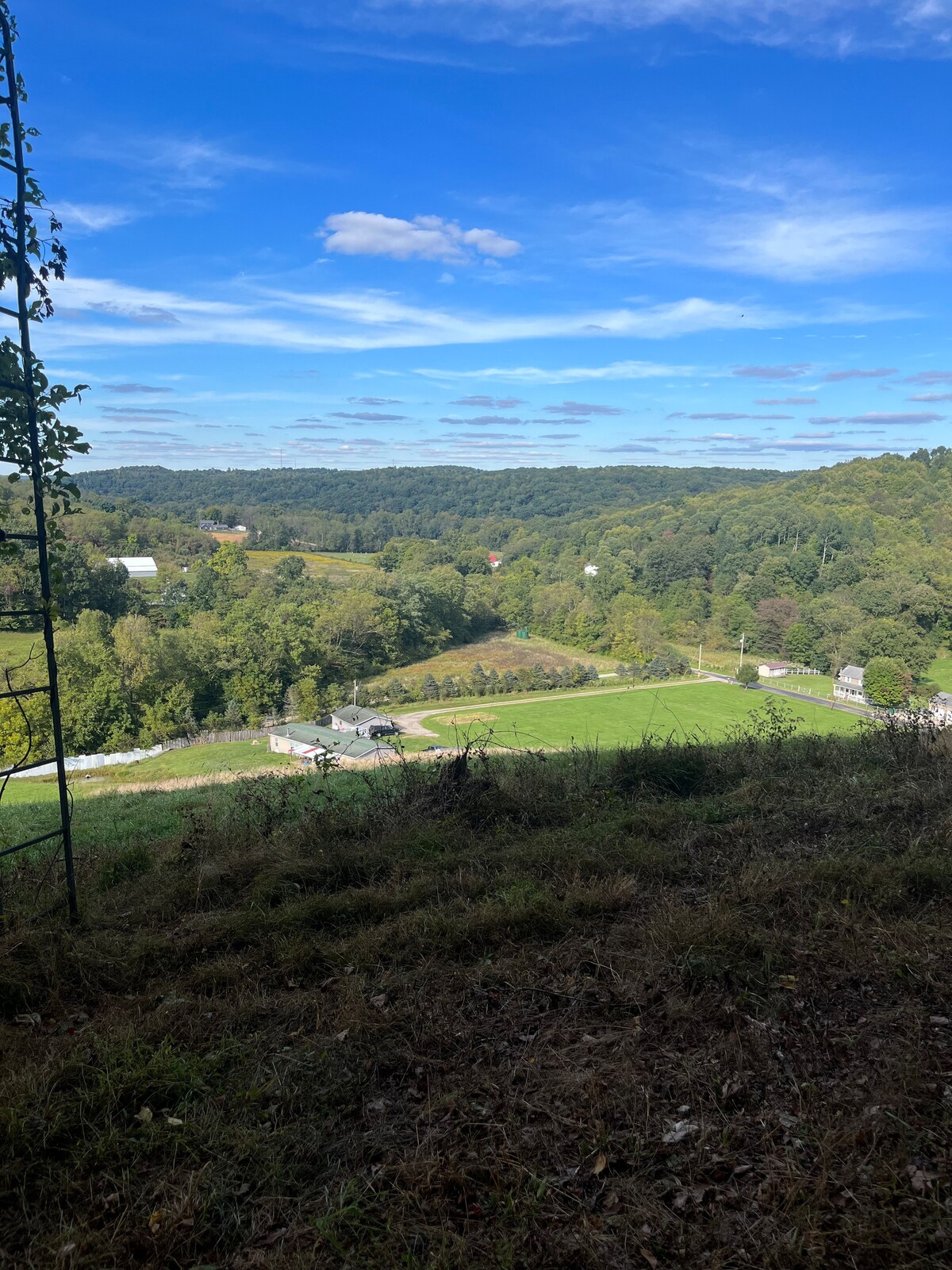 It will be hard to find a more beautiful southern ohio landscape and some of the best sunsets you will ever see. If you want to get away, then you'll be right at home with 50 acre's all to yourself. This is a real cabin.....not a house in the woods. This rustic sit's tucked back 1100 feet off of a lazy country road and provides a 5 mile breath-taking view from the front porch. Close to many activities, 25 minutes to New Albany, 15 minutes to Newark, 10 minutes to Dillon State park.