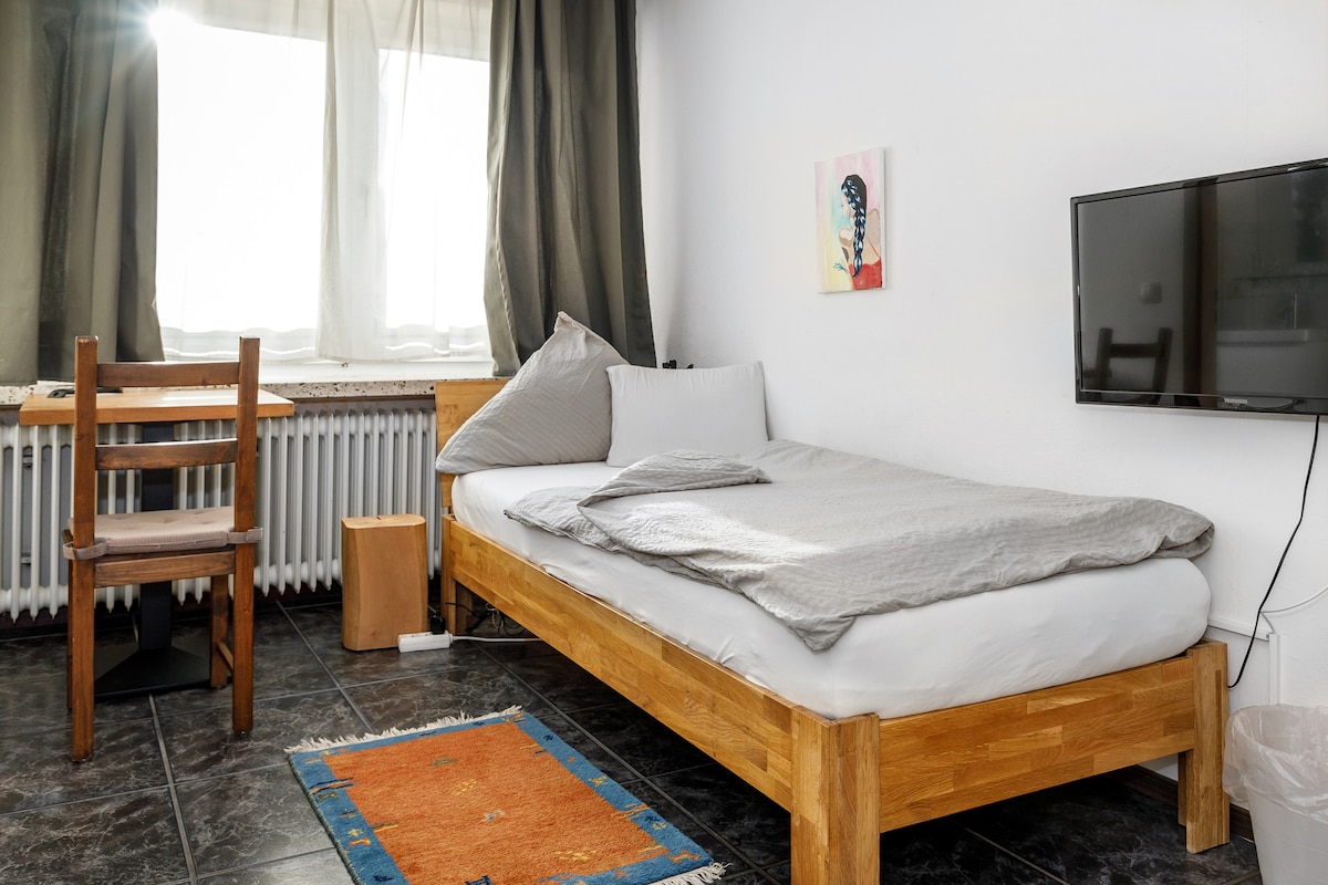 Բարի գալուստ մեր սենյակ միայնակ ճանապարհորդի համար: Սենյակ քաղաքի սրտում ՝ կիսանկուղային սեմինարի քաղաքային կյանքի մեջ ։ Այն քայլեր է դեպի հիմնական տեսարժան վայրեր և տեսարժան վայրեր և առաջարկում է հասարակական տրանսպորտից, ռեստորաններից և խանութներից հեշտությամբ օգտվելու հնարավորություն ։
