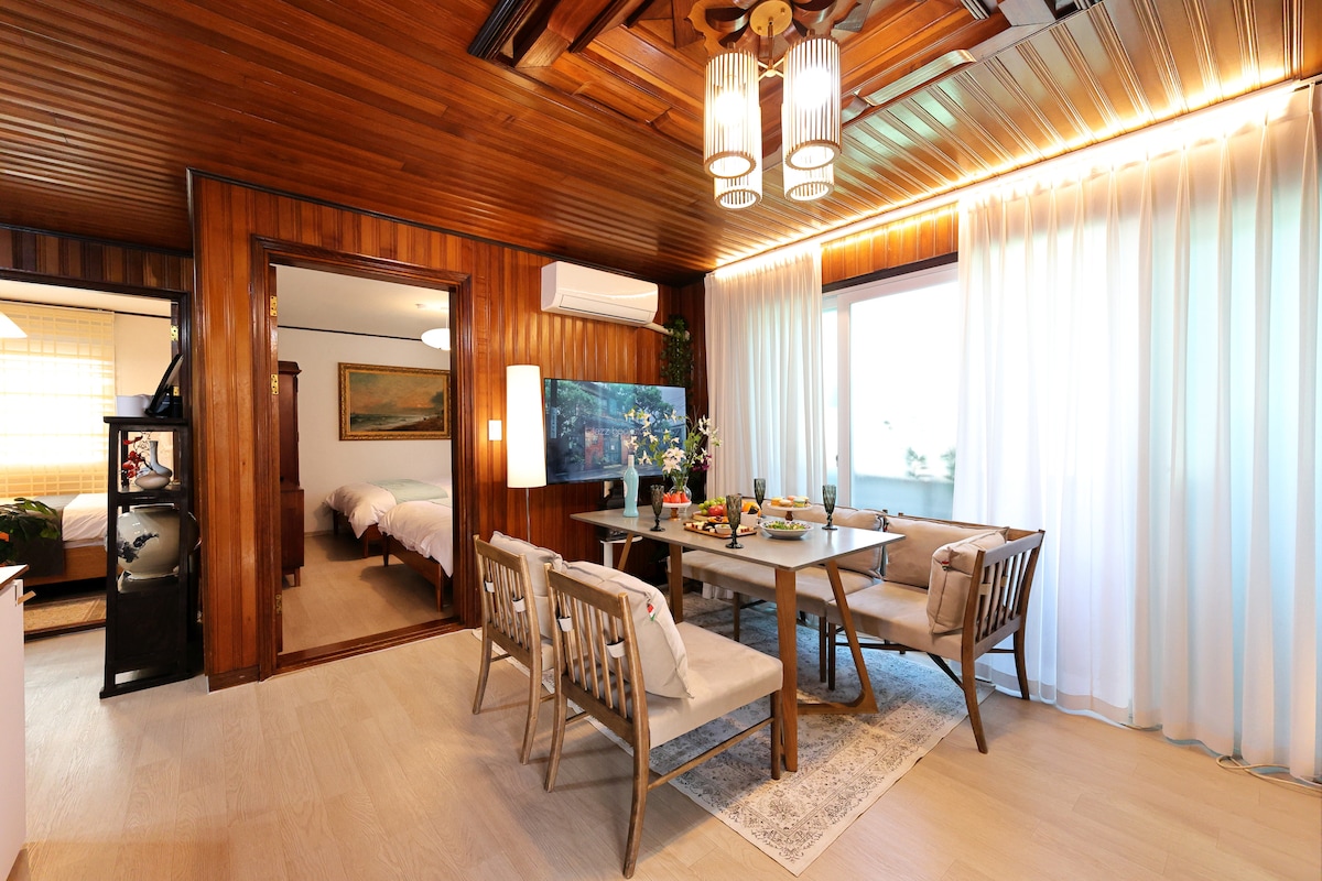 Նախագծել է ինտերիերի դիզայները ՝ տանտերը Նրբաճաշակ 35 պյոնգ (116մ2) կացարան ։ (Ամբողջական ինտերիերն ավարտվել է 2024 թվականի հոկտեմբերին )։ 3 սենյակ, 2 լոգասենյակ, 1 ցնցուղ Ննջասենյակ1 - Queen + Queen Ննջասենյակ 2 - Թագուհի + Թագուհի Ննջասենյակ3 - Թագուհի Հիմնականը 4 հոգու համար, կարող է տեղավորել մինչև 10 հոգի: Հասանելի է վերելակով ։ * Կացարանի շենքում առկա ուղեբեռի պահպանման ծառայություն * Տարրեր - Samsung լվացքի մեքենա և չորանոց - 2 ~ 3 վարսահարդարիչ - Գոլորշու արդուկ - Ինֆրակարմիր կաթսա - Միկրոալիքային վառարան և սառնարան - օդորակիչ յուրաքանչյուր սենյակում - հատակի ջեռուցում -65 դյույմանոց Samsung Smart TV Հագեցած է տարբեր կենցաղային տեխնիկայով, ինչպես նաև սպասքով և խոհանոցային պարագաներով ։ Անվճար կայանատեղին հասանելի է նաև առաջին հարկում ։