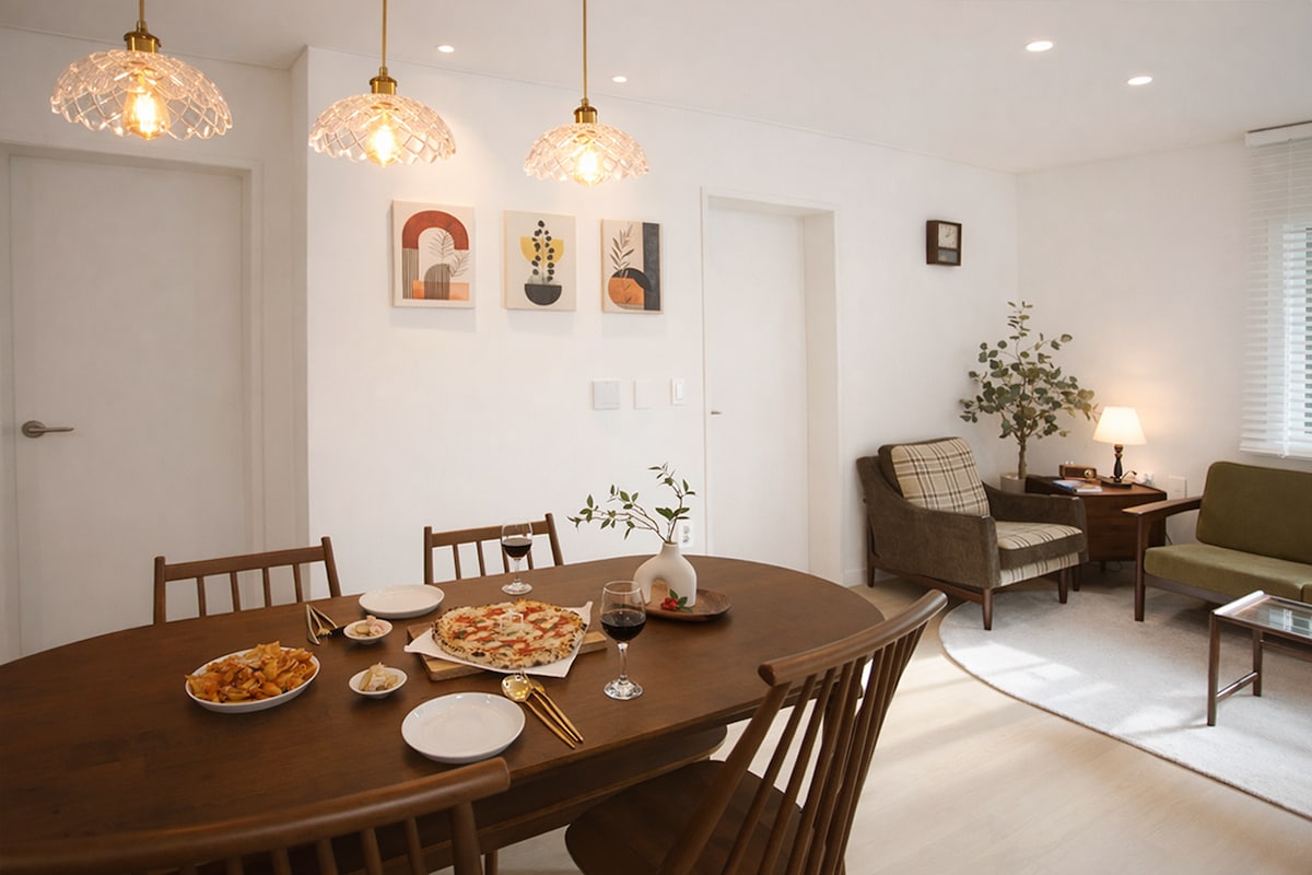 Մետրոյից կամ օդանավակայանի կանգառից ոտքով ●3 րոպե ●15 րոպե մինչև Մյոնգ - դոնգ, 35 րոպե մինչև Գանգնամ ● Վաղ ժամանման ծառայություն Mood Haus - ը հարմարավետ և ոգեշնչող տարածք է, որը գտնվում է Հոնդայի սրտում գտնվող հանգիստ բնակելի տարածքում ։ Քաղաքի եռուզեռից ընդամենը մի քանի քայլ հեռավորության վրա կարող եք հանգիստ վայելել ։ Հանգստացեք և վայելեք գիրք և սուրճ մեր հյուրասենյակի սրճարանում ՝ Bauhaus - ի դիզայնով: Հասանելի են կորեական և անգլերեն գրքերի ընտրանի ։