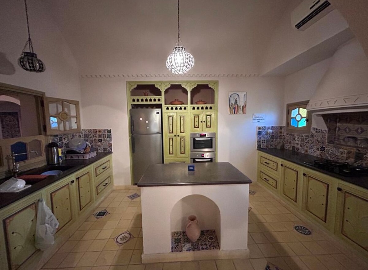 Նորույթ Ջերբա կղզում ❣️ ՆԱԽԱՃԱՇԸ ՆԵՐԱՌՎԱԾ Է:) Գտնվում է Միդուն քաղաքում և միայն ՝ - Ծովից մեքենայով 5 րոպե հեռավորության վրա - Ջերբա գոլֆից 10 րոպե հեռավորության վրա Այս բացառիկ վիլլան նուրբ կերպով միավորում է ավանդական թունիսյան ճարտարապետությունը և ժամանակակից դիզայնը: Այն բաղկացած է 3 նրբաճաշակ առանձնաբաժիններից ՝ յուրաքանչյուրն իր առանձին լոգասենյակով, սիրալիր ճաշասենյակով, լիովին կահավորված խոհանոցով և շքեղ տանիքով ՝ մայրամուտը դիտելու համար ։