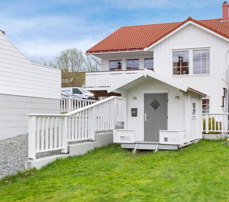 Քաղաքի կենտրոնից ընդամենը մի քանի մետր հեռավորության վրա, բայց շատ հանգիստ նեղ ճանապարհի վերջում ՝ հիասքանչ ֆյորդով և լեռնային տեսարաններով: Ձեր կայանատեղին մեր տան դիմաց է, և դուք իջնում եք արտաքին սանդուղքով դեպի ձեր մուտքը ։ Մուտքն ունի մեծ զգեստապահարան ։ Հաջորդը ժամանակակից և լիովին կահավորված խոհանոցն է ։ Լոգասենյակում կա ցնցուղի և լվացքի մեքենայի չորանոց ։ Միջանցքի ներքևում ննջասենյակ է ՝ 150x200 սմ մահճակալով և մեծ պահարանով, և հյուրասենյակ ՝ բազմոցով, որը ձգվում է մինչև 140x200 սմ և օրորոց ։ Բարի գալուստ ։