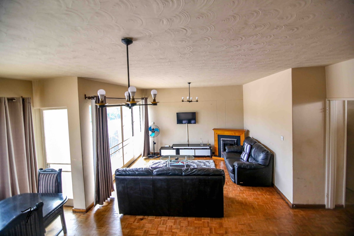 Rambling open plan home, four double bedrooms, a loft with 3 single beds, 3 bathrooms wifi-pool-cosy bar-snooker room-balconies and patio-flood lit tennis court-pavilion-parking-lovely indigenous garden-close to shopping center and amenities. The house is fully serviced no extra charge-Fully walled and gated (electric) and secured. It is in a very peaceful and beautiful area We have alternative power sources in case of ZESA power cuts and all the water on the property is from our own borehole