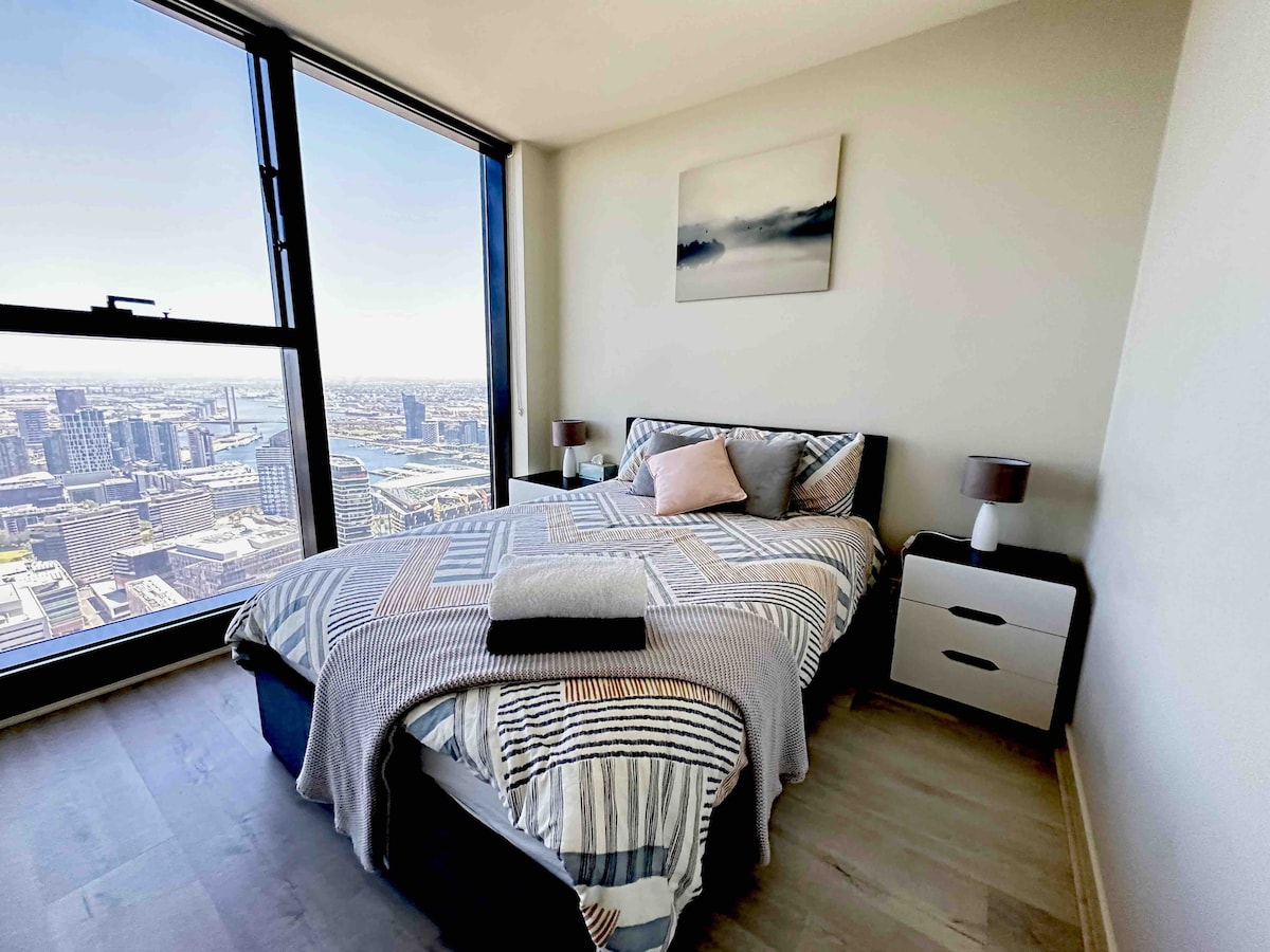 Մեր բնակարանը գտնվում է քաղաքի ամենաթանկ և բացառիկ բնակարաններից մեկում, որը Հարավային Խաչ կայարանից ընդամենը մեկ րոպե հեռավորության վրա է, որտեղ դուք կարող եք գտնել լավագույն հասարակական տրանսպորտի տարբերակը Մելբուռնի գեղեցիկ տեսարժան վայրերին: Մեկ րոպե հեռավորության վրա է նաև Sky ավտոբուսի ծառայությունը դեպի օդանավակայան ։ Վայելեք ձեր հանգիստը ժամանակակից , կոկիկ և մաքուր բնակարանում, որտեղից բացվում են հիասքանչ համայնապատկերային տեսարաններ յուրաքանչյուր սենյակից : Անվճար տրամվայ շենքի դիմացի մասում ։ Հյուրերի համար հասանելի լողավազան , մարզասրահ, սաունա ՝ 33 - րդ մակարդակում