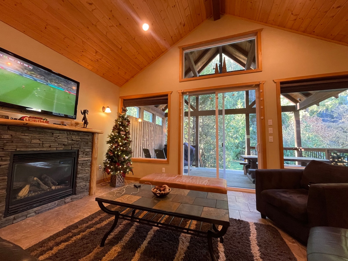 Փախչեք քաղաքային կյանքից և հանգստացեք Աստծո ստեղծած բնության մեջ։ Նստեք ապակեպատ ծածկապատշգամբներում, որոնցից մեկը ջակուզիի, իսկ մյուսը՝ խարույկի սեղանի վրա է։ Հարմար է հանգստի և ընկերների հետ հանդիպումների համար։ Նստեք տաք կրակի մոտ ՝ ներսից կամ դրսից ։ Դուք շրջապատված եք բնությամբ և լեռներով ՝ խաղաղ գյուղական միջավայրում ։ Գտնվում է Հոուփ քաղաքից 15 րոպե հեռավորության վրա և Հարիսոն լճից 20 րոպե հեռավորության վրա ։
