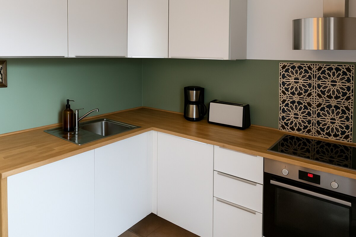 Նստեք և հանգստացեք այս հանգիստ, նորաոճ տարածքում ։ Նոր վերանորոգված և ամբողջովին նոր կահավորված տարածքը հրավիրում է ձեզ սպասելու: Ձեր արձակուրդի համար, անհրաժեշտության դեպքում, գրասեղանի աշխատանքով, գերծանրքաշային հարմար: Մեր կողմից նշված կիսանկուղային տունը կառուցվել է ավելի քան 200 տարի առաջ և նոր է վերանորոգվել ։ «պնդուկը» գտնվում է տան առաջին հարկում և մոտ 50 քմ է: Մեծ այգին թույլ է տալիս լիցքաթափվել կամ դուրս գալ գոլորշիից: Ուղիղ մուտք դեպի տեռաս ։