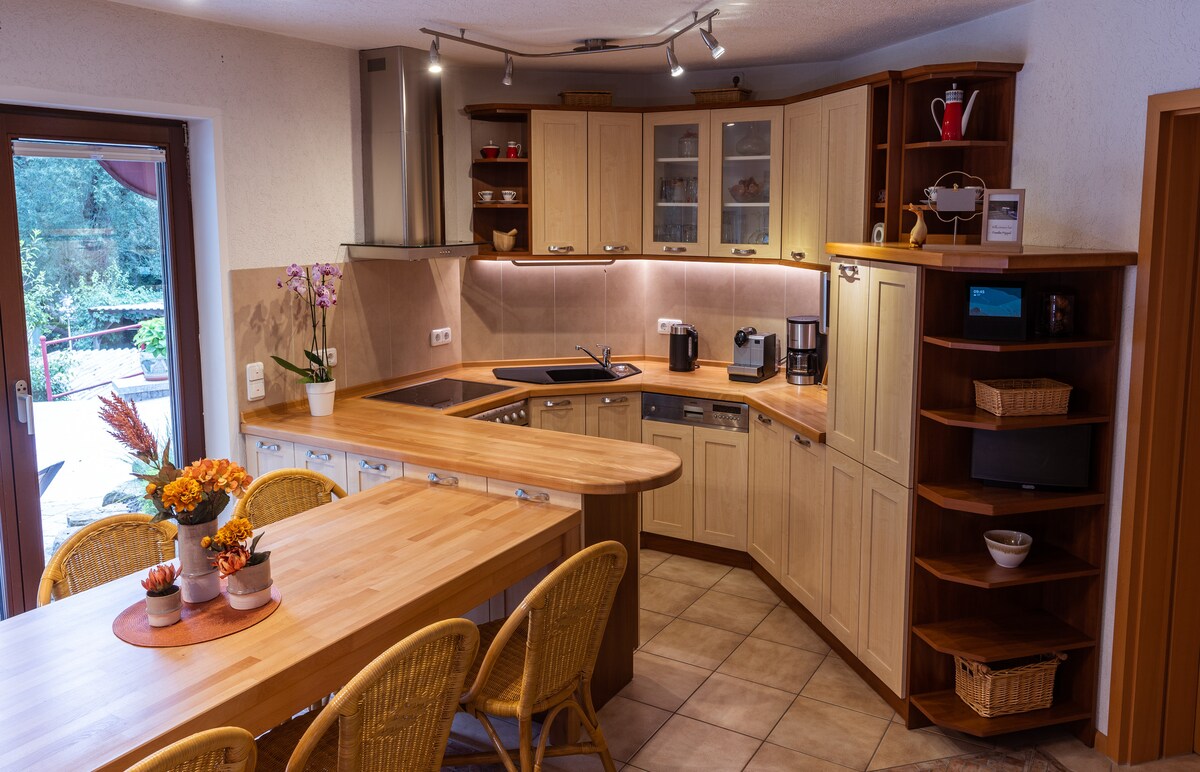 Նստեք և հանգստացեք այս հանգիստ, նորաոճ տարածքում ։ Նոր վերանորոգված և ամբողջովին նոր կահավորված տարածքը հրավիրում է ձեզ սպասելու: Ձեր արձակուրդի համար, անհրաժեշտության դեպքում, գրասեղանի աշխատանքով, գերծանրքաշային հարմար: Մեր կողմից նշված կիսանկուղային տունը կառուցվել է ավելի քան 200 տարի առաջ և նոր է վերանորոգվել ։ «պնդուկը» գտնվում է տան առաջին հարկում և մոտ 50 քմ է: Մեծ այգին թույլ է տալիս լիցքաթափվել կամ դուրս գալ գոլորշիից: Ուղիղ մուտք դեպի տեռաս ։