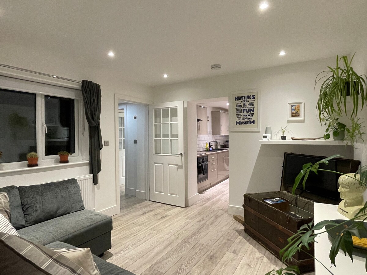 Այս հատուկ վայրը մոտ է ամեն ինչին, ինչը հեշտացնում է ձեր այցի պլանավորումը ։ Մնացեք մեր շքեղ առաջին հարկի թեթև և ընդարձակ մեկ ննջասենյակով բնակարանում, որն ունի մեծ հյուրասենյակ ՝ բուխարիով և մայրամուտի ընդարձակ տեսարաններով դեպի Բիչի Հեդ ։ Հիասքանչ տեռասով և ծառերով մեկուսացված մասնավոր այգով և Հասթինգս դղյակի տակ գտնվող մեր ռոմանտիկ հանգիստն ընդամենը 5 րոպե ոտքով է մինչև լողափ և խանութներ: Հին քաղաքը և Ձկնորսական թաղամասը գեղատեսիլ կարճ զբոսանք են Վեսթ Հիլի գագաթին