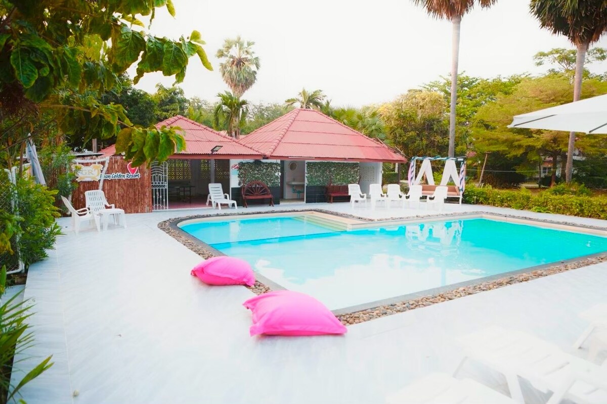 Գյուղում Ban nong Yai. 240 կմ հեռավորության վրա Բանգկոկ. 30 րոպե առողջարանային քաղաքից Hua Hin. Pranburi 10 կմ. Pak Nam Pran 10km.Dolphin Bay 10 կմ բեմական երթուղին. Ապահով պատերով այգի: Առանձին լողավազան: Ապահովված ավտոկանգառ ՝ մեքենա կայանելու համար ։ 1.7ԿՄ մի քանի սիրուն ավազոտ լողափերից: Ավտոմեքենաների վարձույթ, մոտոցիկլետներ, հեծանիվներ, սադոոսներ մոտակայքում: Կարելի է կազմակերպել տանտերերը: ԽՆԴՐՈՒՄ ԵՆՔ ՆԿԱՏԻ ՈՒՆԵՆԱԼ Հետևի այգին հենց նոր արդիականացվել է պահեստային թափքով երկրորդ պատիոյի ավելացմամբ ։