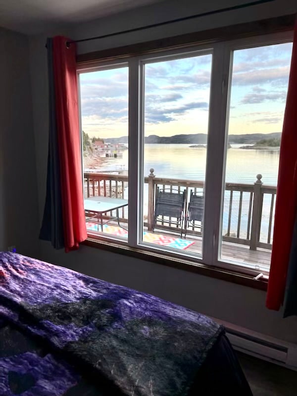 Տեղակայված լինելով գեղեցիկ Wiseman's Cove - ի ապաստարանում Twillingate - ից, մեր մեծ, հարմարավետ և մաքուր եռանկյունաձև տունը գտնվում է օվկիանոսի ափին և առանձնանում է ուղիղ մուտք դեպի ջրի ափամերձ ձկնորսության կամ լողացող/ռաֆթինգի համար: Մեր հարմարավետ տունն ունի ցնցող տեսարաններ ՝ հատակից մինչև առաստաղ ձգվող պատուհաններով, որոնք նայում են դեպի ջուրը և հարակից անտառային տարածքները, բացօթյա բուխարին, ներսի էլեկտրական բուխարին, ընդարձակ ննջասենյակները, ամբողջովին բեռնված խոհանոցը և ճաշասենյակը, ինչպես նաև կենտրոնացված օդը ՝ հովացման/ջեռուցման համար: