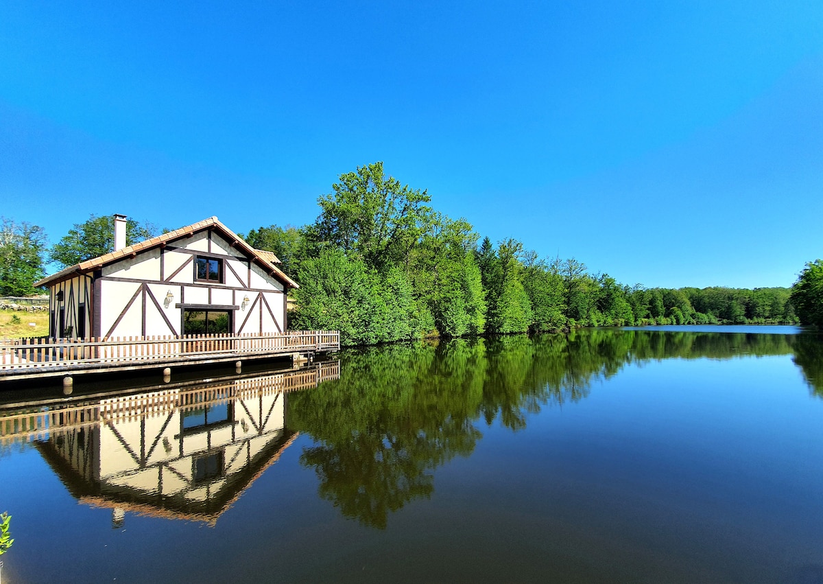 Welcome to the Chalet du Moulin de Lapeyre, nestled on the edge of a private lake in Saint-Estèphe, at the heart of the vast forests of the Périgord Vert. From the moment you arrive, you are invited to relax and enjoy the stunning lake views from the stilted terrace. You will be able to fully enjoy our 25-hectare estate, whether you are seeking peace and quiet, canoeing on the lake, cultural activities, or you enjoy hiking and no-kill fishing.
