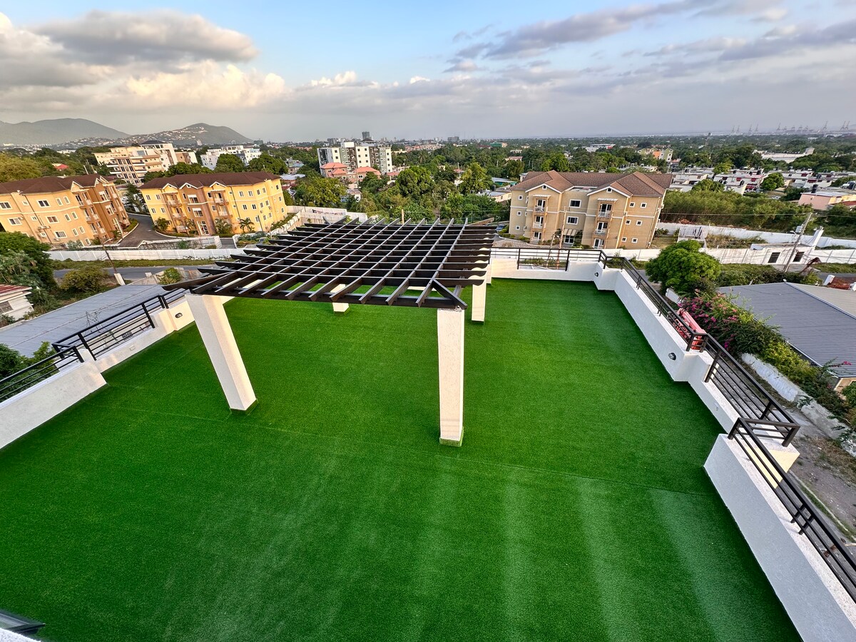 Նրբագեղ կահավորված 1 սենյականոց բնակարան, որն ունի 24 ժամյա անվտանգություն A/C հարկաբաժնով: Գտնվում է Ջամայկայի մայրաքաղաքի (Քինգսթոն) սրտում: Կենտրոնական է Նյու Քինգսթոնում, Half Way Tree - ում և %{ res Spring - ում: Մոտակայքում գտնվում են հայտնի Բոբ Մառլիի թանգարանը, Էմանկիպյան պարկը և մեր կղզու հայտնի Դևոն տունը, Ազգային մարզադաշտը, Ուսեյնի հետքերը և ռեստորանը, Վեսթ Ինդիայի համալսարանն ու համալսարանական հիվանդանոցը: Այս հաճելի տարածքը գրավիչ է ինչպես միայնակ, այնպես էլ զույգերի համար: