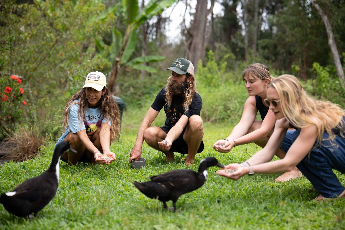Aloha! We’re Anita & Tammy, your hosts at the Hawaiian Sanctuary, a 44-acre tropical paradise where the beauty of nature meets the warmth of community. We’d love to welcome you into our home, where you can unwind, rejuvenate, and experience the magic of island living in a way that’s deeply connected to the land.