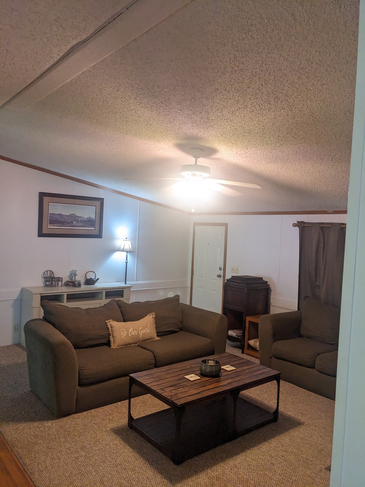 Արթնացեք շքեղ մեծ մահճակալում և սահեցրեք ավտոտնակի դուռը ՝ ծխամորճերի ընդարձակ տեսարանները բացելու համար ։ Վայելեք սուրճը տախտակամածի վրա ։ Լիովին կահավորված մահճակալ և լոգասենյակ, օդորակիչ/ջեռուցում և խոհանոցիկ ։ Տնային կենդանիներ թույլատրվում են 40 $/առաջին տնային կենդանու համար 20 $/յուրաքանչյուր լրացուցիչ տնային կենդանու համար: Տարածքը ցանկապատված է ։ Լսեք գետը ՝ պառկելով տախտակամածի ցանցաճոճում ։ Կատարյալ փուլ ՝ ցերեկային կամ գիշերային հանգիստ աստղագուշակության համար ։ Դիտեք վայրի բնության և ագարակային կենդանիներին կամ ձկներին ՝ մեր գետի 1/2 մղոն հեռավորության վրա գտնվող իշխանի համար ։ Հանգիստ~ մասնավոր ~ հիասքանչ~ հատուկ կարիքներով անձանց համար~