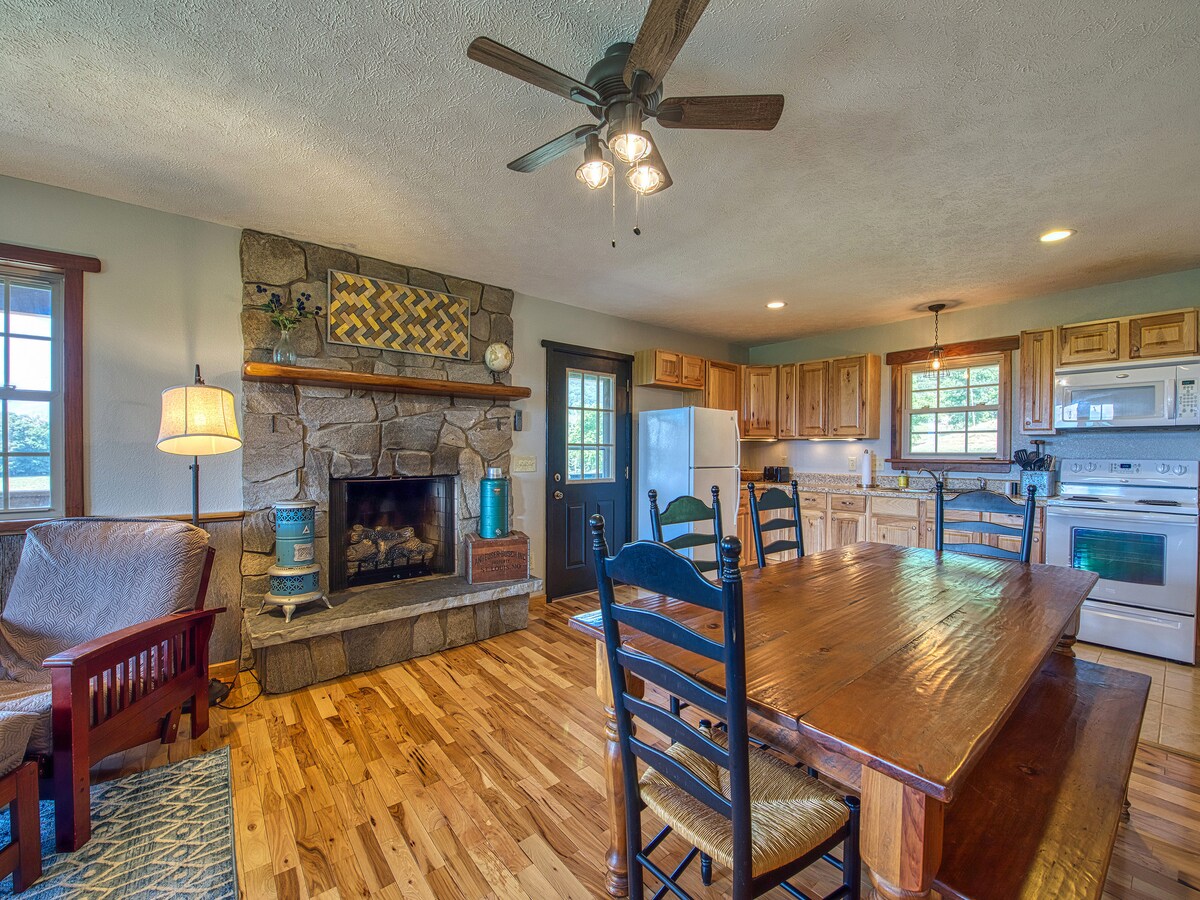 WOW! Our farmhouse is in the Top 1% of Airbnb Homes! YAY! We have a "Solid Five-Star" rating based on Reviews, Ratings, and Reliability! Our 1920s farmhouse is located on our working farm, 3 miles from Maggie Valley. If you're dreaming of a getaway to the Great Smoky Mountains but concerned about navigating steep, winding mountain roads, the Barn Quilt Farmhouse is the ideal place to stay. You'll enjoy beautiful mountain views, easy paved access, and a level driveway.
