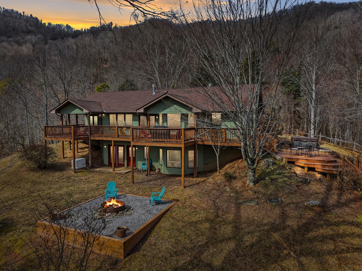 This VERY RUSTIC, contemporary home designed by Norwegian architect, Bernardo Rostad, is situated at the foot of the Great Smoky Mountains National Park & adjoins the renowned Cataloochee Ranch. Enjoy spectacular sunrises from the east facing windows perched high above the clouds at 4,700 ft elevation w/ 360 degree views of the Smoky Mountains, located on 25 PRIVATE acres. *See "THE SPACE" description below & confirm that you have read prior to booking request. Reply: I have read "THE SPACE".