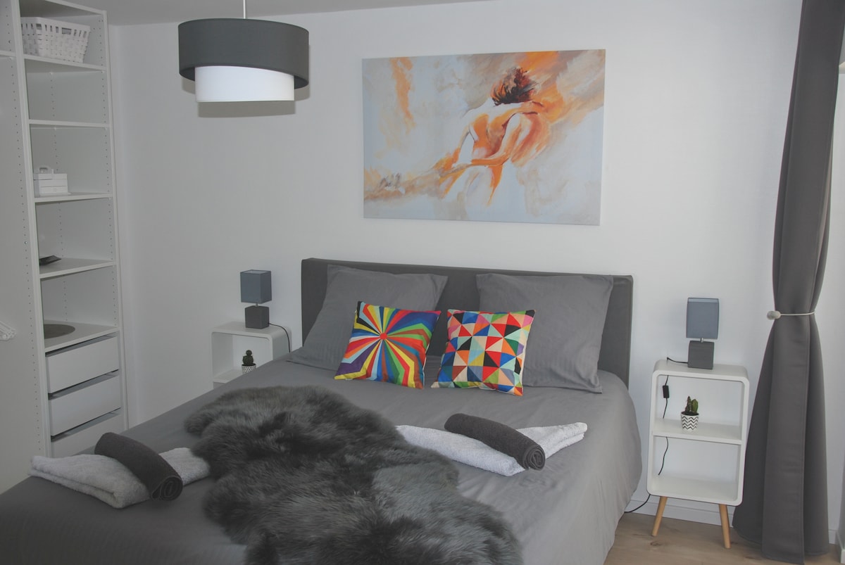 Ժամանակակից բնակարան ՝ 50 մ դեպի շվեյցարական սահման, կայանատեղիով