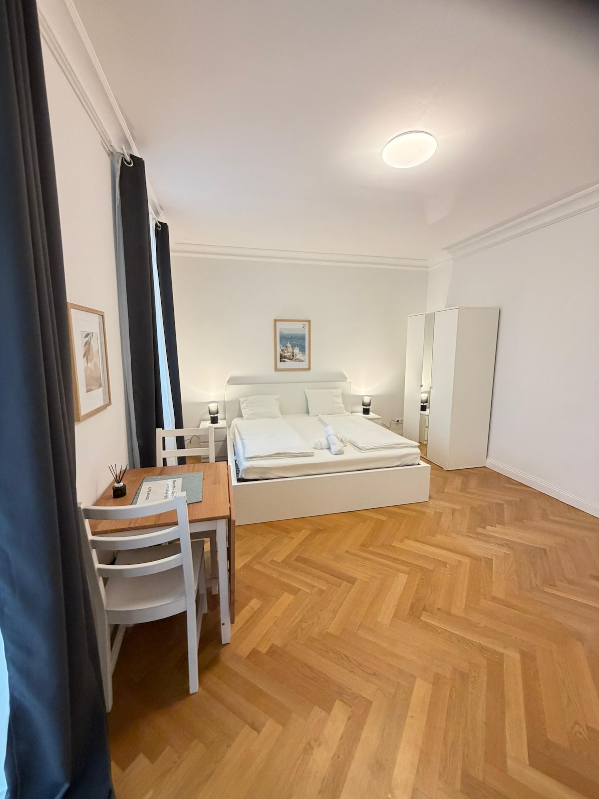 Die frisch renovierte Wohnung befindet sich in einem Gründerzeithaus in einer ruhigen Seitenstraße mit alten Kastanienbäumen. Eine Einkaufsstraße, der Wienerwald und Weingärten sind nur einen kurzen Spaziergang entfernt, mit der Straßenbahn ist man in 15 Minuten im 1.Bezirk. Das schnelle WLAN und das separate Arbeitszimmer ermöglichen eine berufliche oder home-office-Nutzung in einem komfortablen temporären Zuhause in Wien . Bewilligung zur Kurzzeitvermietung MA37/1426951-2024-1.