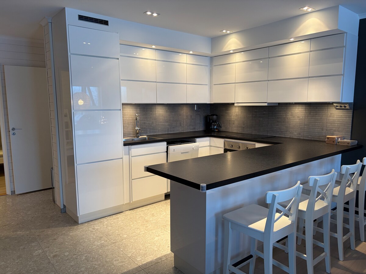 Դուք մոտ եք ամեն ինչի, երբ մնում եք կենտրոնում գտնվող այս տանը ։ Դուք ապրում եք ժամանակակից բնակարանում, որը ոտքով հեռավորության վրա է մինչև թռիչքներ, ավտոբուս, ռեստորաններ և խանութներ ։ Տունն ունի 6 մահճակալ, սաունա և լիովին կահավորված է ինքնասպասարկման համար: Բնակարանն ունի 59 քմ տարածք, համակցված խոհանոց և հյուրասենյակ, լոգասենյակ, 3 ննջասենյակ և մեծ կտուր ։ Հյուրերը բերում են իրենց անկողնային սպիտակեղենը և ինքնուրույն մաքրում ։ Հնարավոր է վճարովի վարձակալել անկողնային սպիտակեղեն և սրբիչներ ։ Ցավոք, մենք չենք կարող տնային կենդանիներ ընդունել ։