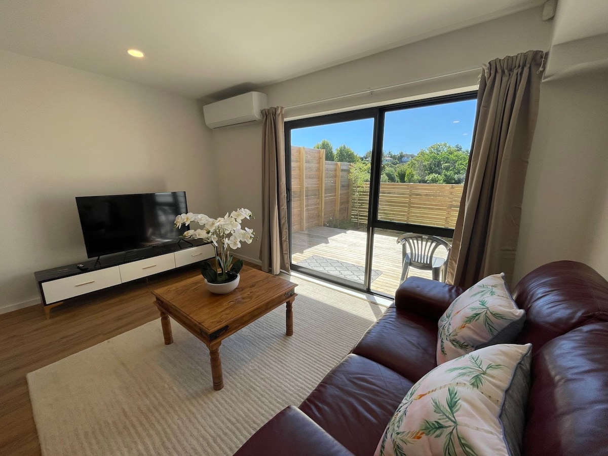 Փախեք դեպի մեր հմայիչ 2 ննջասենյակով տունը, որը գտնվում է փարթամ կանաչապատ տարածքով շրջապատված ավելի մեծ բնակության վայրի տակ ։ Ընդամենը մի քար ՝ Տիտիրանգի գյուղից և Օքլենդի Սպասակեր լեռնաշղթաների և Արևմտյան ափի լողափերի դարպասի մոտ ։ Տիտիրանգին դրախտ է գուրմանների, սերֆերների, գոլֆիստների և արշավականների համար: Օքլենդի օդանավակայանից ընդամենը 25 րոպե հեռավորության վրա գտնվող այս նոր վերանորոգված մասնավոր հանգիստը հագեցած է ձեզ անհրաժեշտ բոլոր ժամանակակից հարմարություններով ։ Երկարաժամկետ ամրագրումները ողջունվում են ։