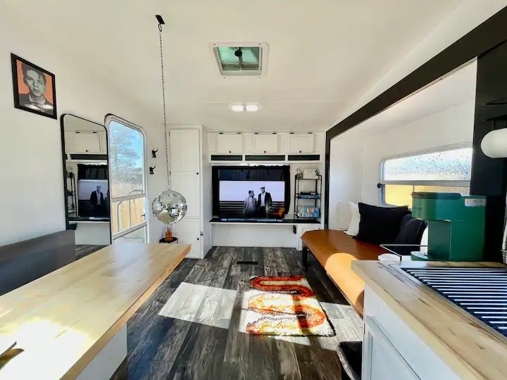 Escape to a modern camper retreat with a private backyard, outdoor dining (table + 4 chairs), stainless steel BBQ grill, and outdoor sink. Minutes from the Las Vegas Strip, restaurants, parks, coffee shops, grocery stores, and shopping. Before booking, please note: • Camper-style layout • Outdoor dining only (no indoor table) • Compact bathroom (no sink) • French press + kettle provided (no drip coffee maker) Not a hotel layout. Best for guests comfortable with camper living.