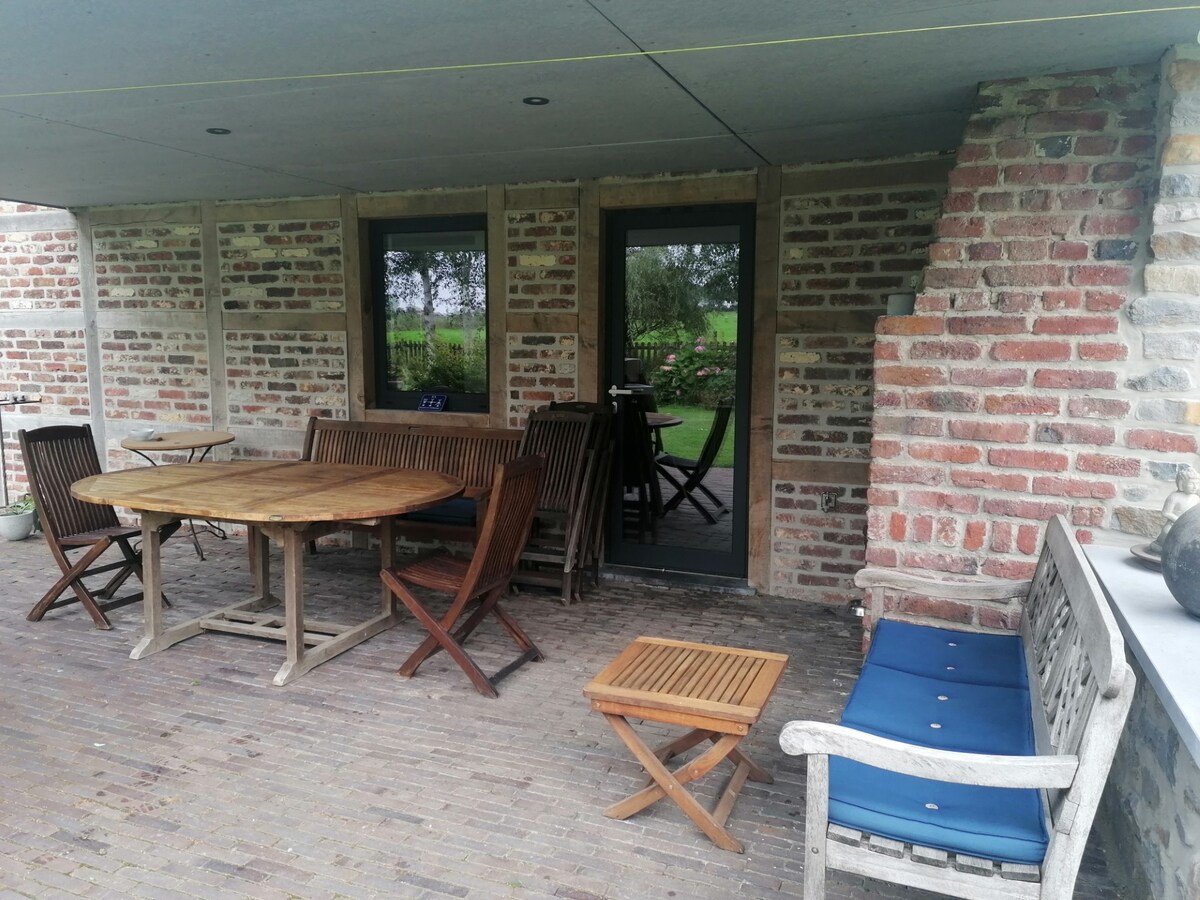 Vaste studio dans une ancienne ferme du 18ième siècle entièrement rénové (53m²). Cuisine équipée lave-vaisselle, micro-onde, four, taques électriques, percolateur, grille pain,... Lit de très bonne qualité(1.6m large), lit simple de 90cm. Web : Wifi Equipement de jardin pour été. Feu à bois. Chauffage central Garage vélos ou moto, Parking privé, Remise pour skis. A 25Km des pistes de skis. Proximité de Maastricht, Aix La Chapelle, Liège Proche du chemin vélo Ravel Ligne 38 Golf au Village 5Km