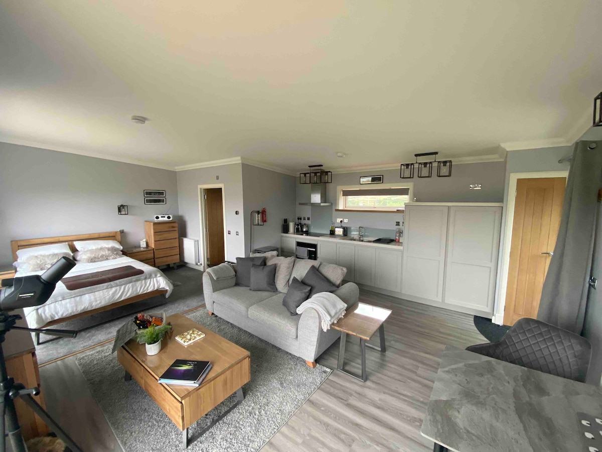 Այս մեկուսի շքեղ հանգիստը պարծենում է 2 թագավորական ննջասենյակներով, ցնցուղասենյակով, խաղասենյակով և խոհանոցով/հյուրասենյակով, որտեղից բացվում են համաշխարհային կարգի տեսարաններ դեպի Կուիլին Հիլզ, Թալիսկեր ժայռեր և Ռում կղզի ։ Այս ափի առջևի սեփականությունն առաջարկում է մասնավոր այգի և ավտոկայանատեղի, ինչպես նաև ուղիղ մուտք դեպի ծովափ և զբոսանքներ ։ Հիանալի է տեղական վայրի բնությանը հետևելու համար ։ Սա ինքնասպասարկման կացարան է, և խոհանոցը համալրված է բոլոր խոհարարական հարմարություններով, ինչպես նաև որոշ հիմնական սնունդով, այնպես որ ժամանելուն պես կարող եք պարզապես հանգստանալ: