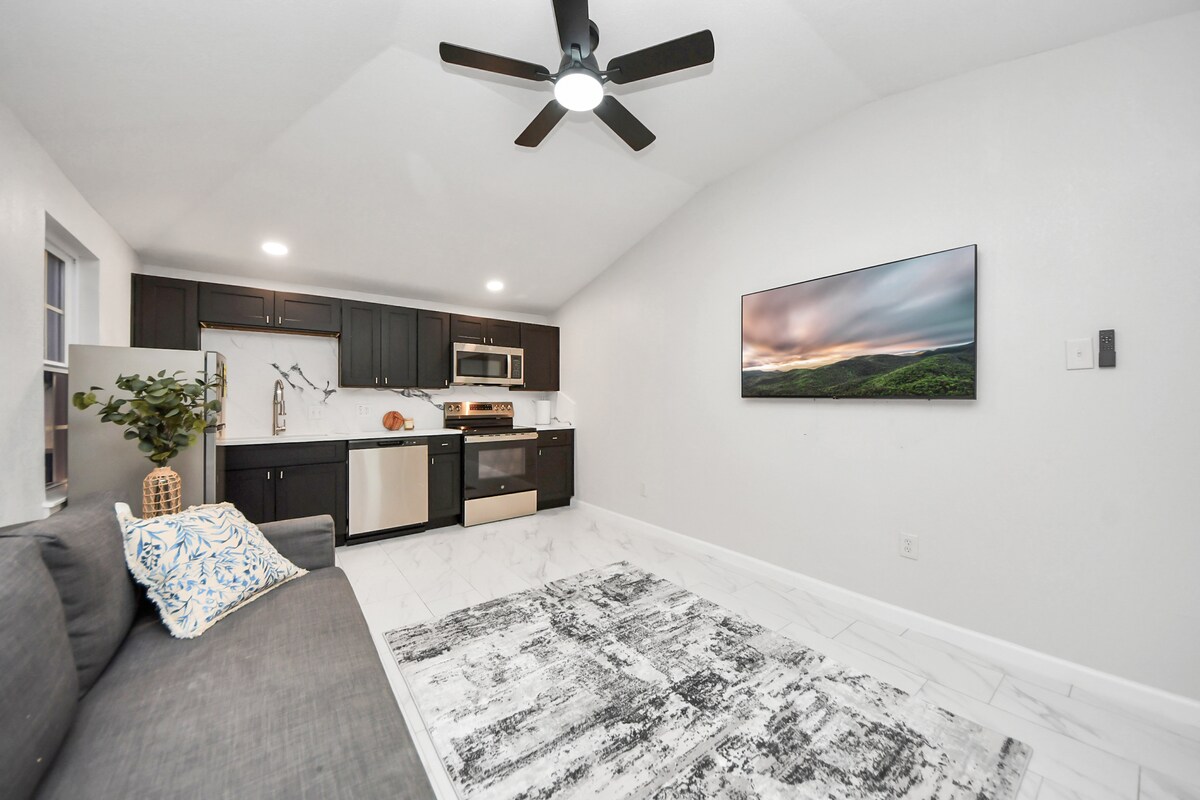 This newly renovated, ultra-chic garage apartment is centrally located in one of Houston's most up-and-coming neighborhoods, Montrose/Mid-town, which boasts a wide array of cafes, restaurants, shops, and bars all walking distance! With a lg. living room with a sleeper sofa and large smart TV, an open concept kitchen with bar seating and bistro table, with a nice separate large bedroom with luxury-grade king mattress / linens and a posh on-suite bathroom.