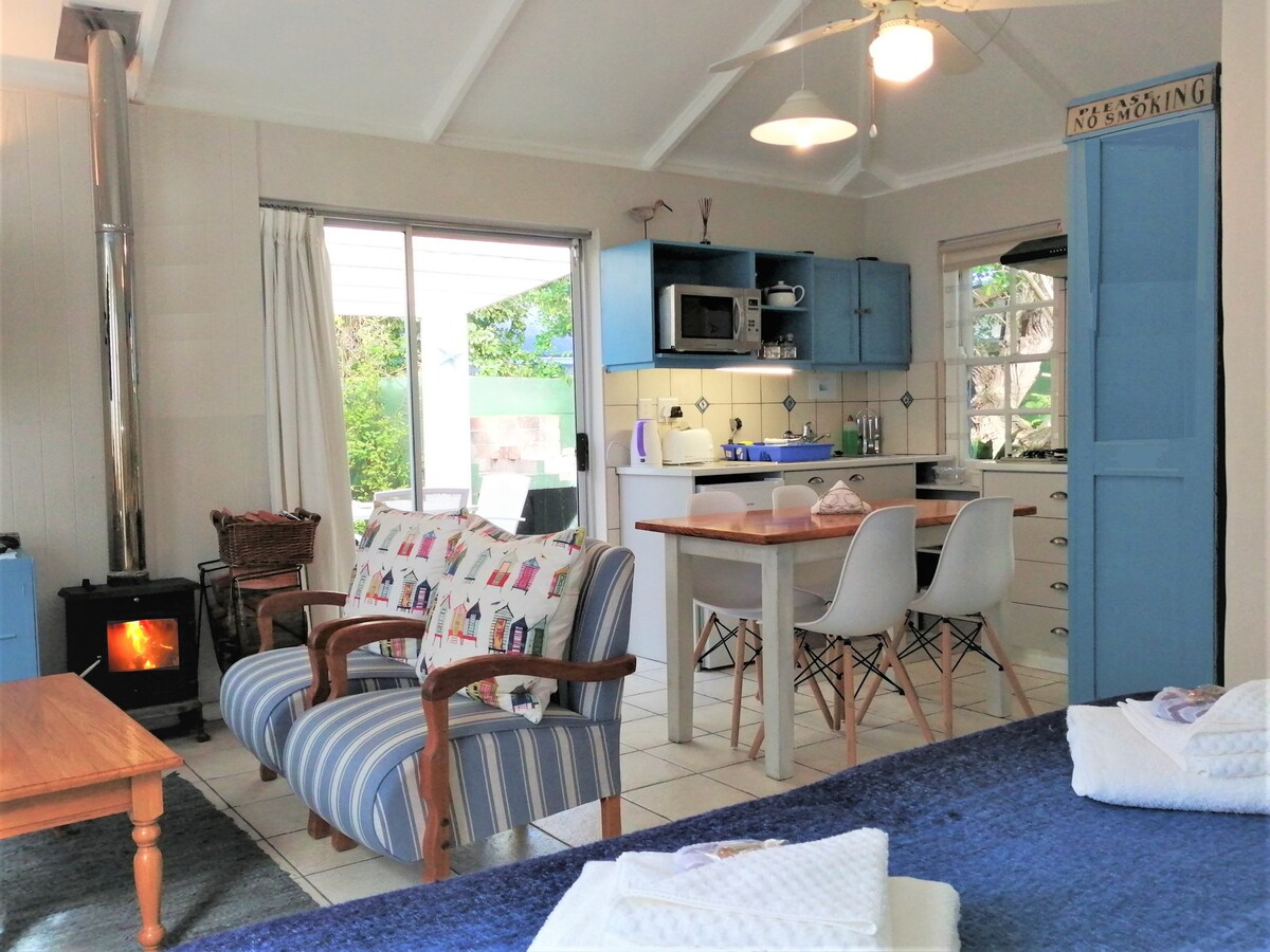 Մեր արտասովոր, արևոտ, ինքնասպասարկման, ամբողջովին փակ պարտեզային քոթեջը հարմարավետորեն քնում է 2 մեծահասակի հետ բաց պլանի ստուդիայի մահճակալում/սիտեր ՝ երկտեղանի կամ երկտեղանի մահճակալներով: Կա լիովին կահավորված խոհանոցիկ և բացօթյա բրայ/բարբեքյուի տարածք ։ Մի փոքր ննջասենյակում քնում է 2 մահճակալ ՝ առանձին մահճակալների վրա ։ Լոգասենյակում կա ցնցուղարան: Էլեկտրական էներգիայի պահուստավորում: Կա փայտի այրվող կրակարան հարմարավետ ձմեռային երեկոների համար: Զբոսնեք քաղաքով, ռեստորաններով և մեր հայտնի ծովափնյա ժայռերով ։ Փողոցային կայանատեղիի և անվճար Wi - Fi - ի միջոցով ։