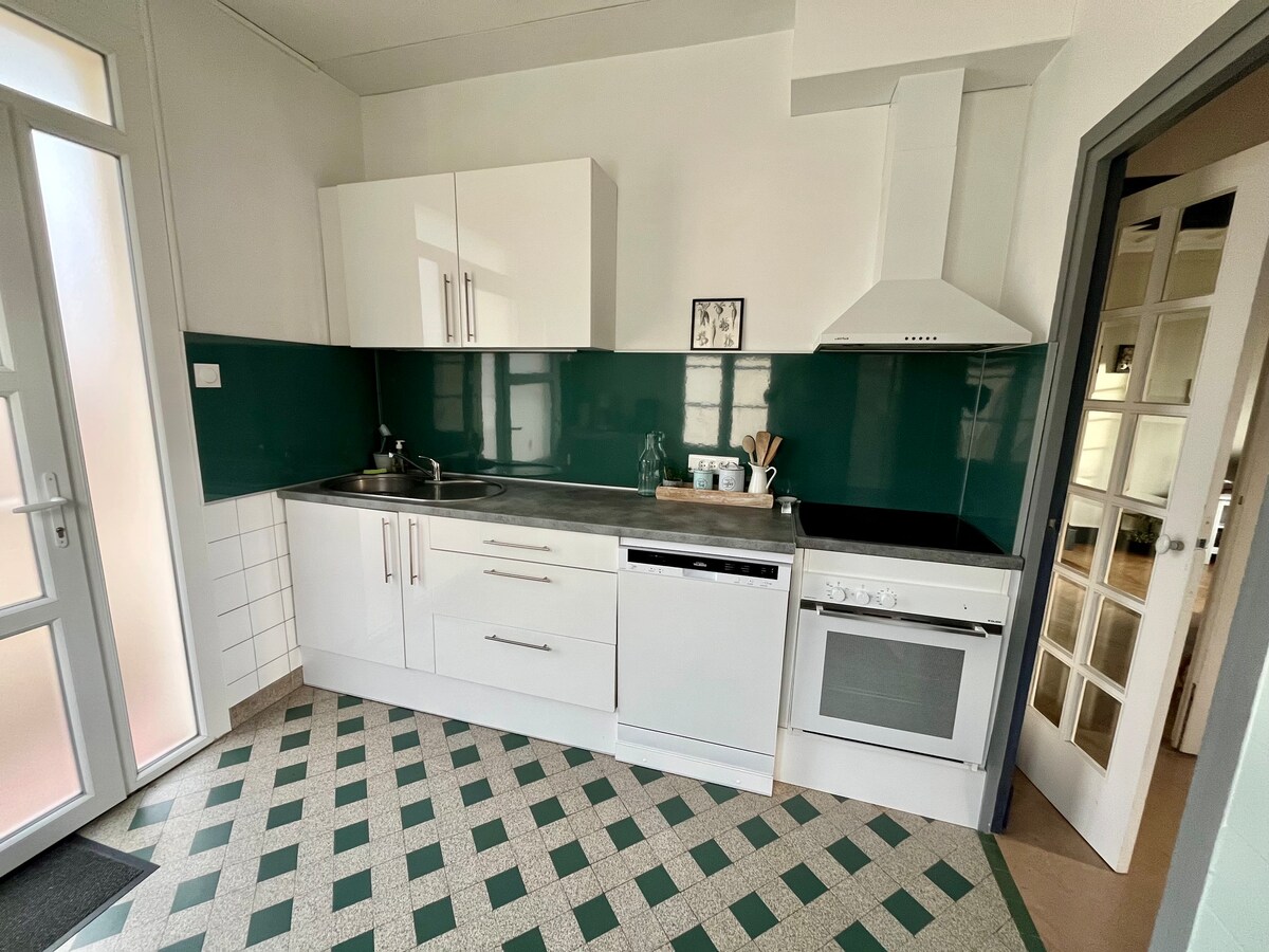 Հմայիչ տուն, որը գտնվում է Լիոնում, Էդմոնդ Բելինի փողոցում ՝ ծառուղու անաղմուկ մասում, բայց խանութների, լողափի և դայկի ստորոտում ՝ 100 մ ։ Հասանելի է 5 հեծանիվ Տրամադրված սպիտակեղեն և ժամանման պահին պատրաստված մահճակալներ (սավաններ, թեյի սրբիչներ, սրբիչներ) Հյուրասենյակ ՝ կահավորված և կահավորված խոհանոց,ամանալվաց մեքենա, dolce gusto, թեյնիկ , տոստեր Լոգասենյակ զուգարանակոնքով, լվացքի մեքենայով, արդուկով 1 - ին հարկ ՝ Չամբ. 2 մահճակալ 90 x 190 - պահարան - մանրահատակ - գրասենյակային տարածք 2 - րդ հարկ ՝ Չամբ ։ 1 մահճակալ 160 x 200 զգեստապահարան ՝ փայտե հատակներ