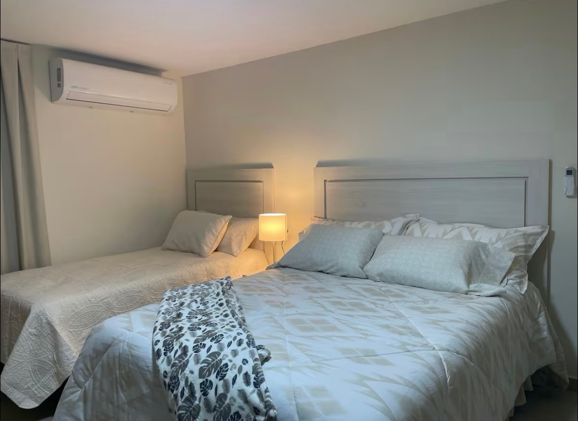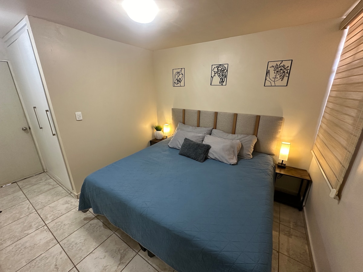 Ուրախ բնակարան ՝ ննջասենյակով և լոգասենյակով, երկտեղանի մահճակալով, խոհանոցով, սմարթ հեռուստացույցով, օդորակիչով և այն ամենով, ինչ անհրաժեշտ է Հերմոսիլյոյում ձեր հանգիստը հարմարավետ և հաճելի դարձնելու համար ։