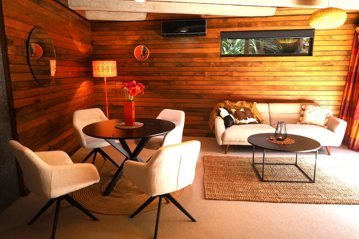A tiny house nestled within a quiet, lush Balinese-inspired sub-tropical urban jungle. Conveniently located within Ponsonby and Herne Bay - cafes, restaurants, and bars are just a 5-minute stroll away. Your host live next door in the main house. The Japanese-inspired minimalist interior features bamboo cabinetry and paneling, with some quirky features such as a catamaran net in the loft which is also a comfortable place to chill out.