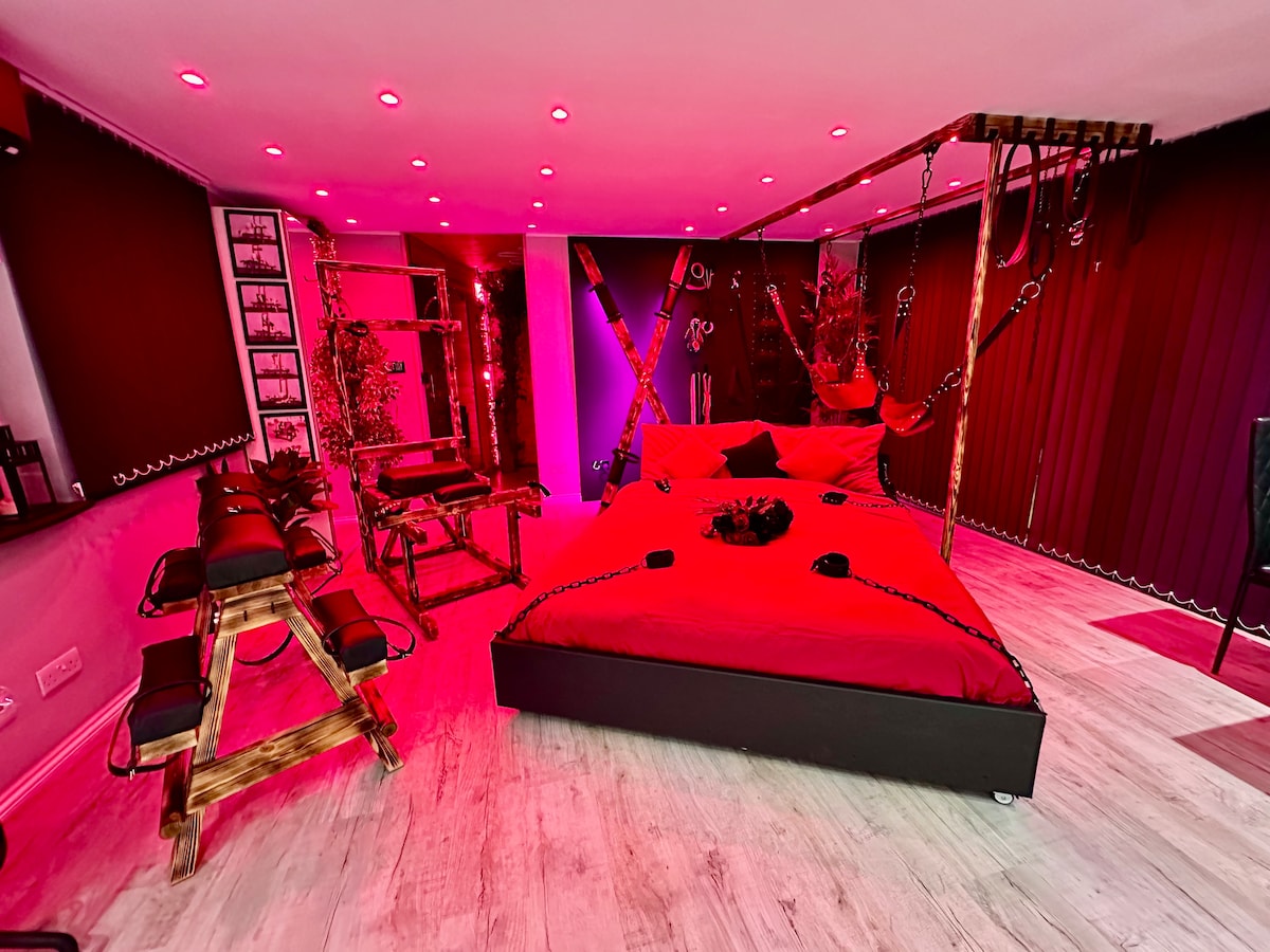 The cottage is tucked away in a completely secret and private location. The private spa has a sauna, jacuzzi, and an additional bathroom with a shower and toilet. However, the main focus is on the furniture, made exclusively for sexual pleasure, which can be moved around in any configuration. The 80-inch TV works integrated with 5:1 Dolby Atmos Cinema. The garden and gym are in the shared with us area. Parking is free, underground station Wood Green is a 10-minute walk away. 25min to city center