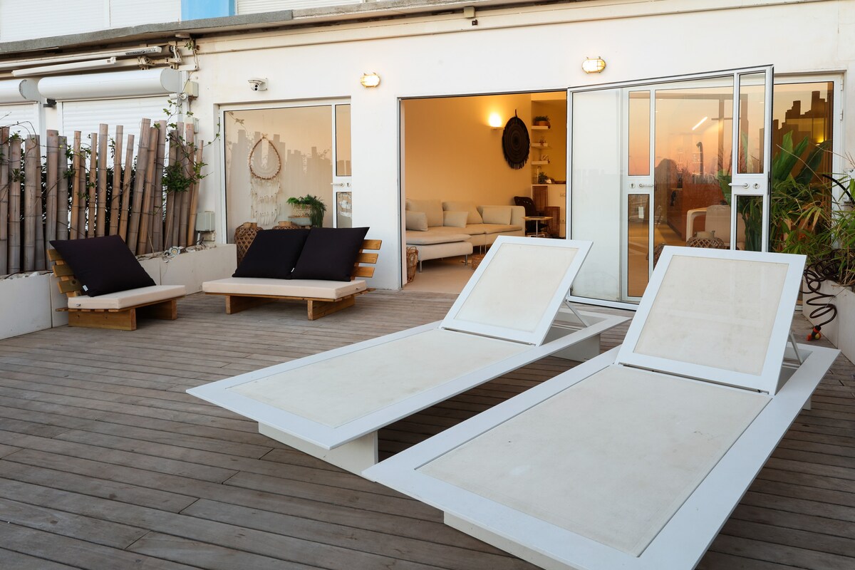 Հեշտացրեք այս անկրկնելի և անխռով հանգիստը ։ Ֆանտաստիկ վայր Luxury Neve Tzedek - ի և կենսունակ ֆլորենտինի միջև: The լողափ, Rothschild boulevard, լավագույն սրճարաններ եւ ռեստորաններ, բարեր եւ ակումբներ, երկաթուղային կայարան, Jaffa - բոլորը ընթացքում 5 -15 րոպե քայլել. Տարածքը հարմարավետ է, հարմարավետ, ժամանակակից, պատրաստված է մեծ սիրով և մանրուքների նկատմամբ ուշադրությամբ ։ Այն ունի ջերմ մթնոլորտ ՝ հանգստանալու և քաղաքը վայելելու համար: Ապշեցուցիչ ծովային տեսարան ձեր հսկայական մասնավոր պատշգամբից, հատկապես անմոռանալի է մայրամուտի ժամանակ: